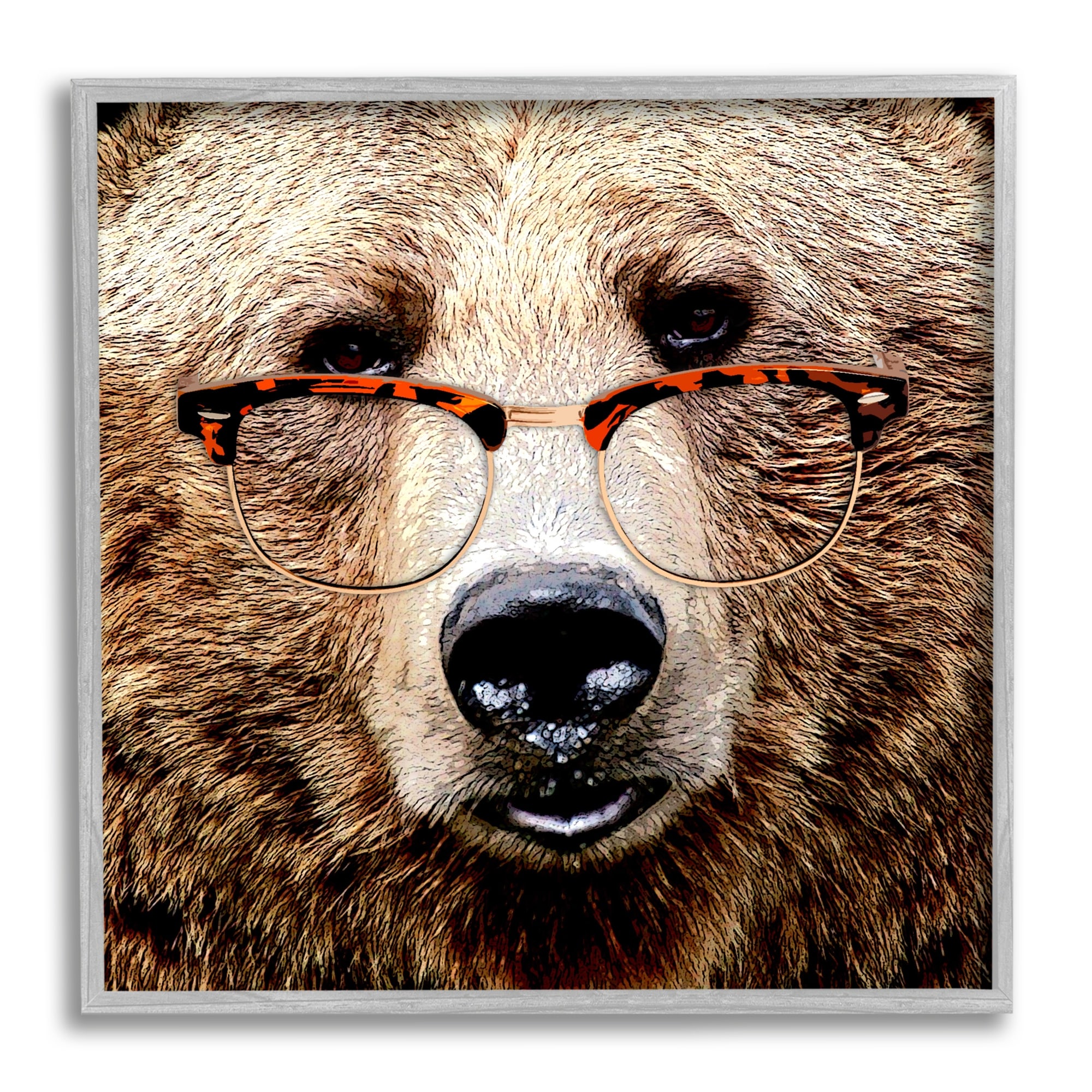 Stupell Industries Wildlife Grizzly Bear Glasses Framed Giclee Art by Karen Smith