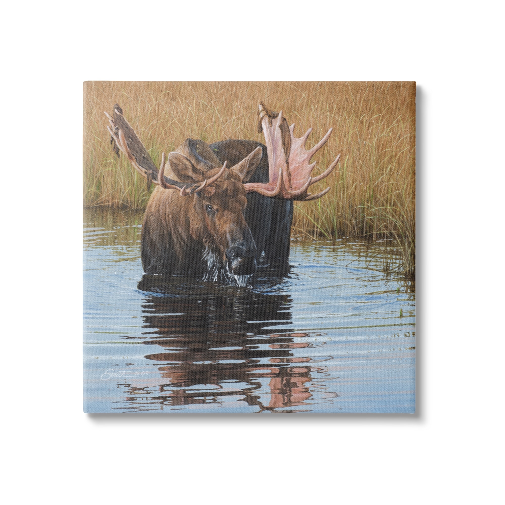 Stupell Industries Moose in Water Wildlife Scene Canvas Wall Art by Daniel Smith
