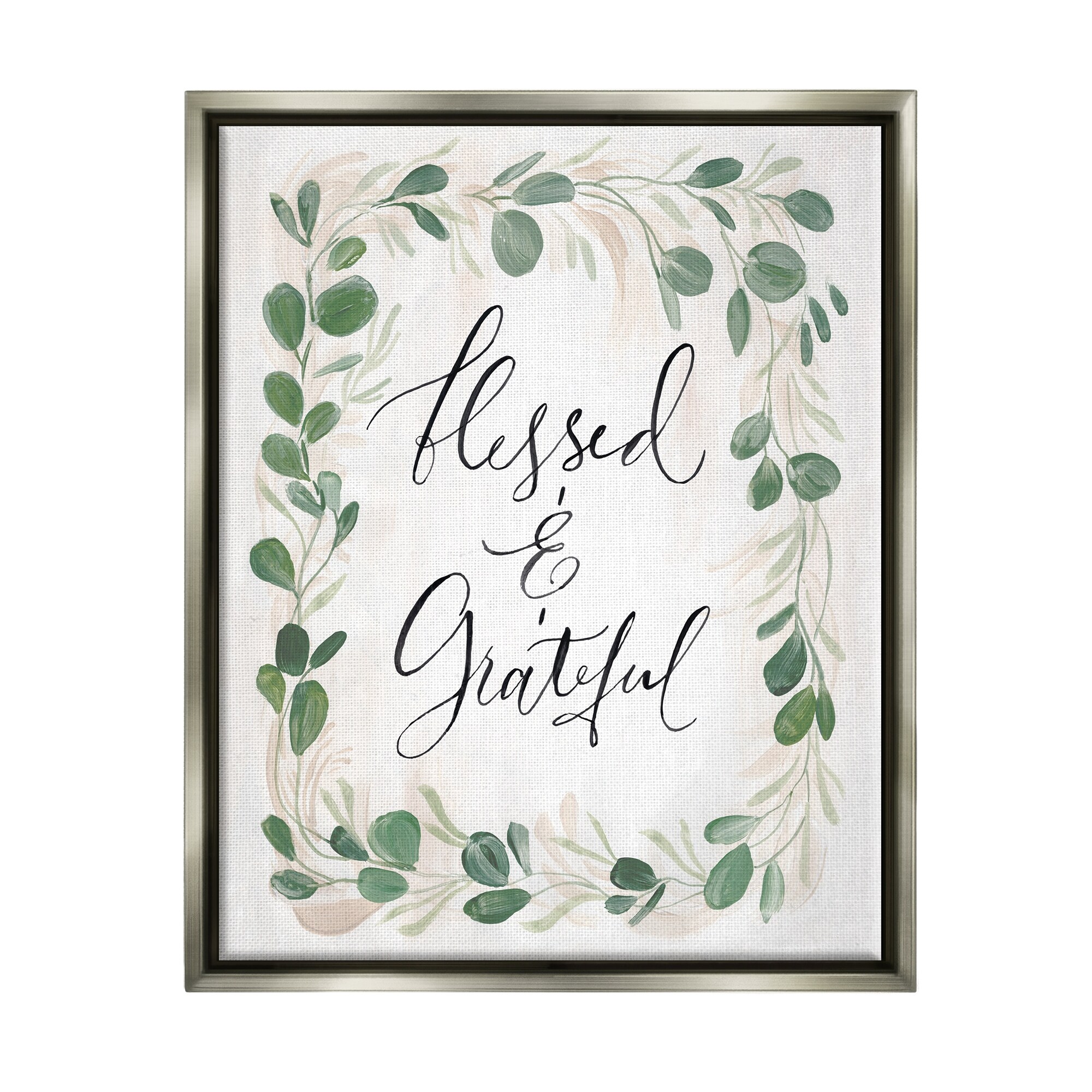 Stupell Blessed & Grateful Botanical Eucalyptus Border Calligraphy Floater Frame, Design by Caverly Smith