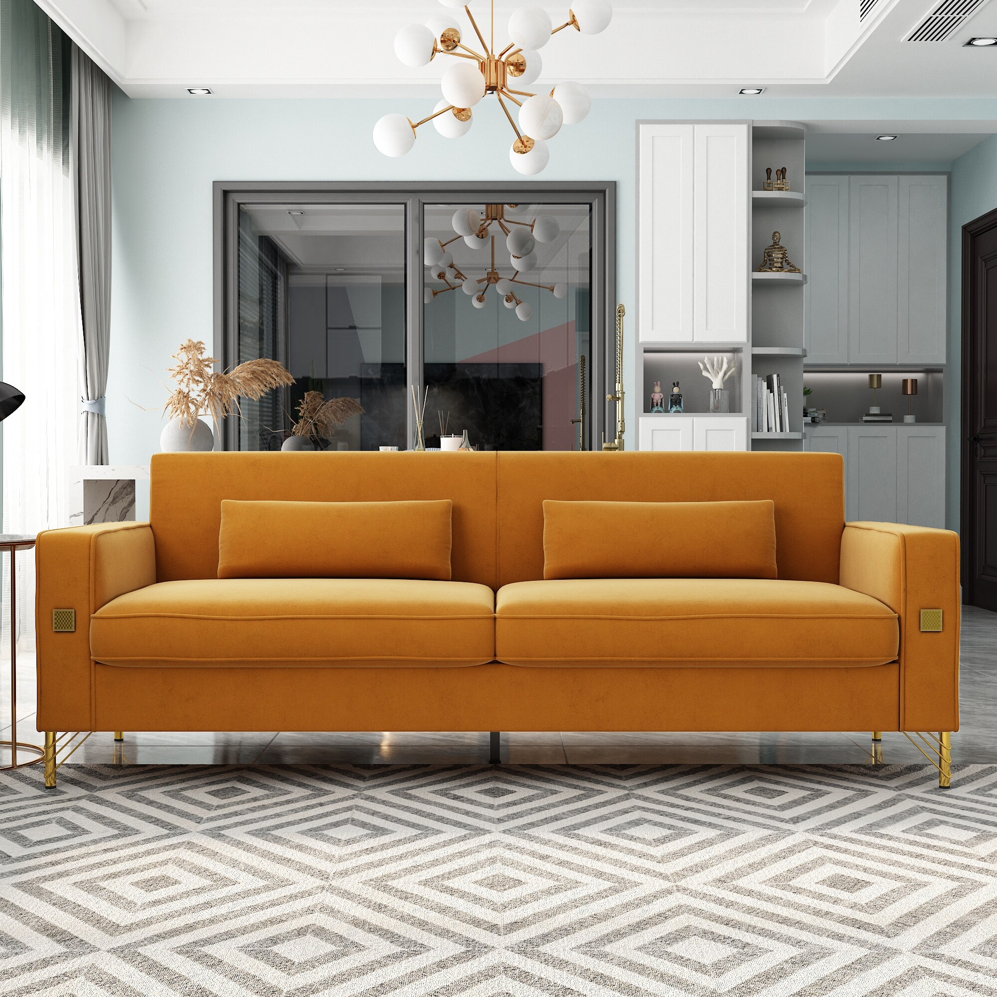 85.5" Luxury Velvet Upholstered 3-Seater Sofa with Gold Legs