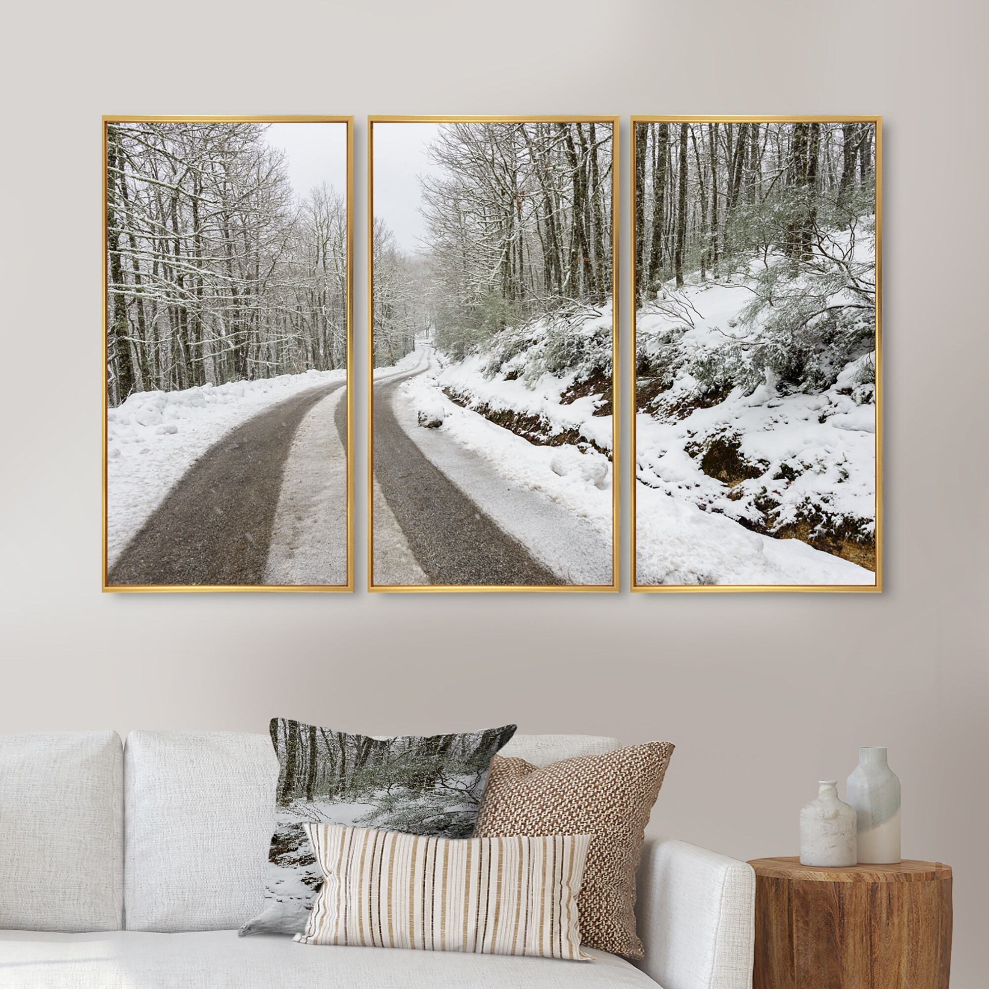 Designart "Snow Storm at Piornedo Spain" Landscape Framed Artwork Set of 3 - 4 Colors of Frames