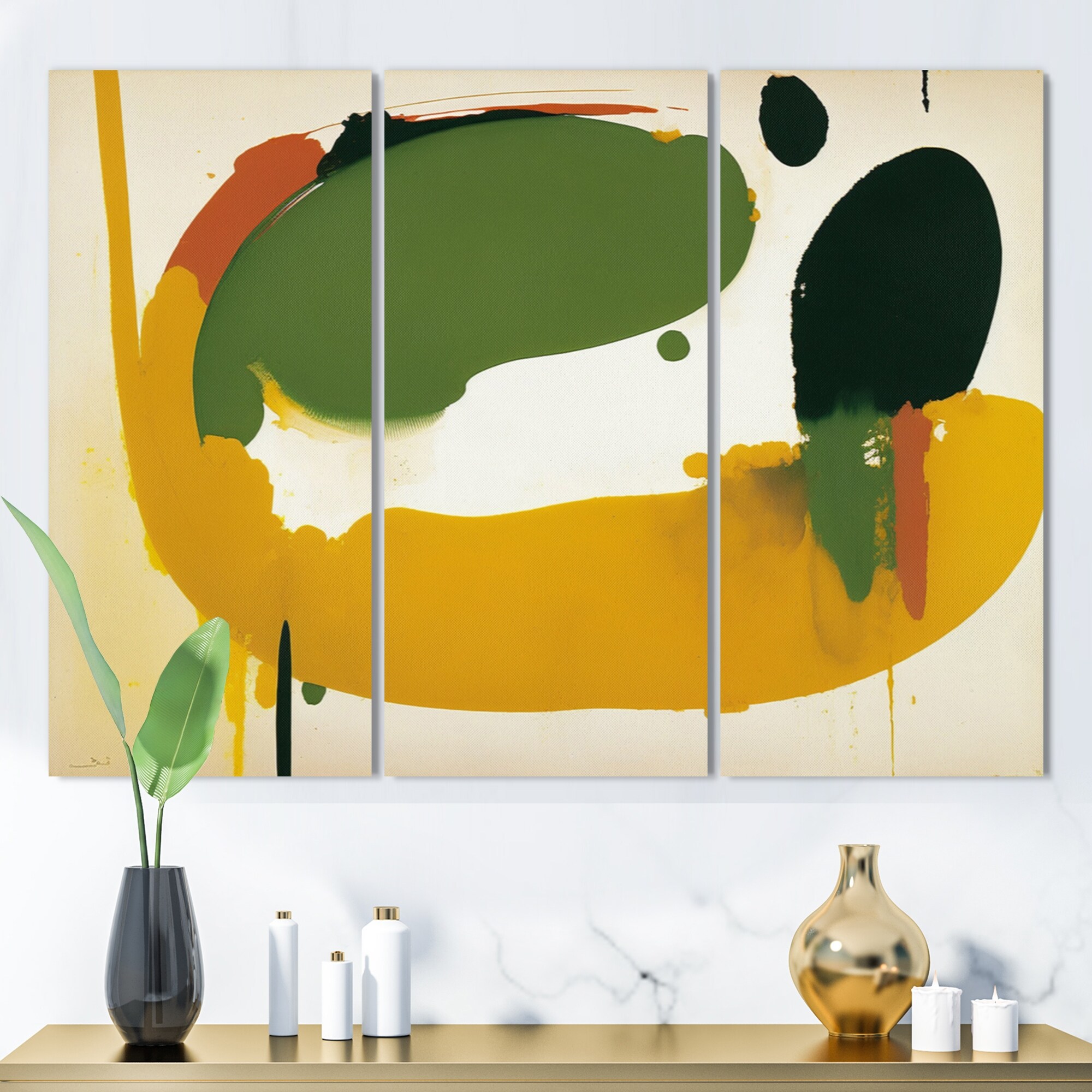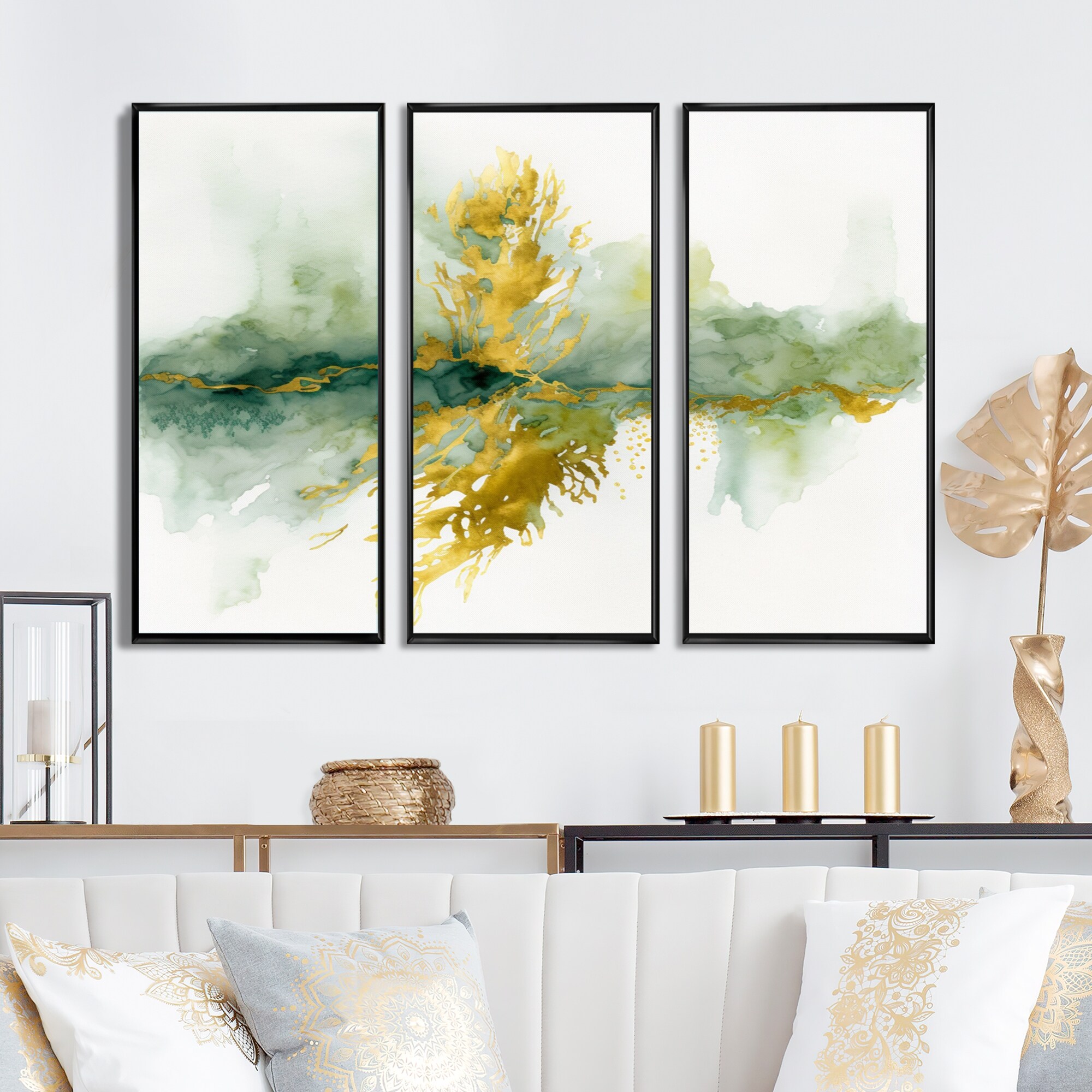 Designart "Awakenings In Spanish Moss V" Abstract Liquid Ink Framed Canvas Wall Art Print - 3 Panels