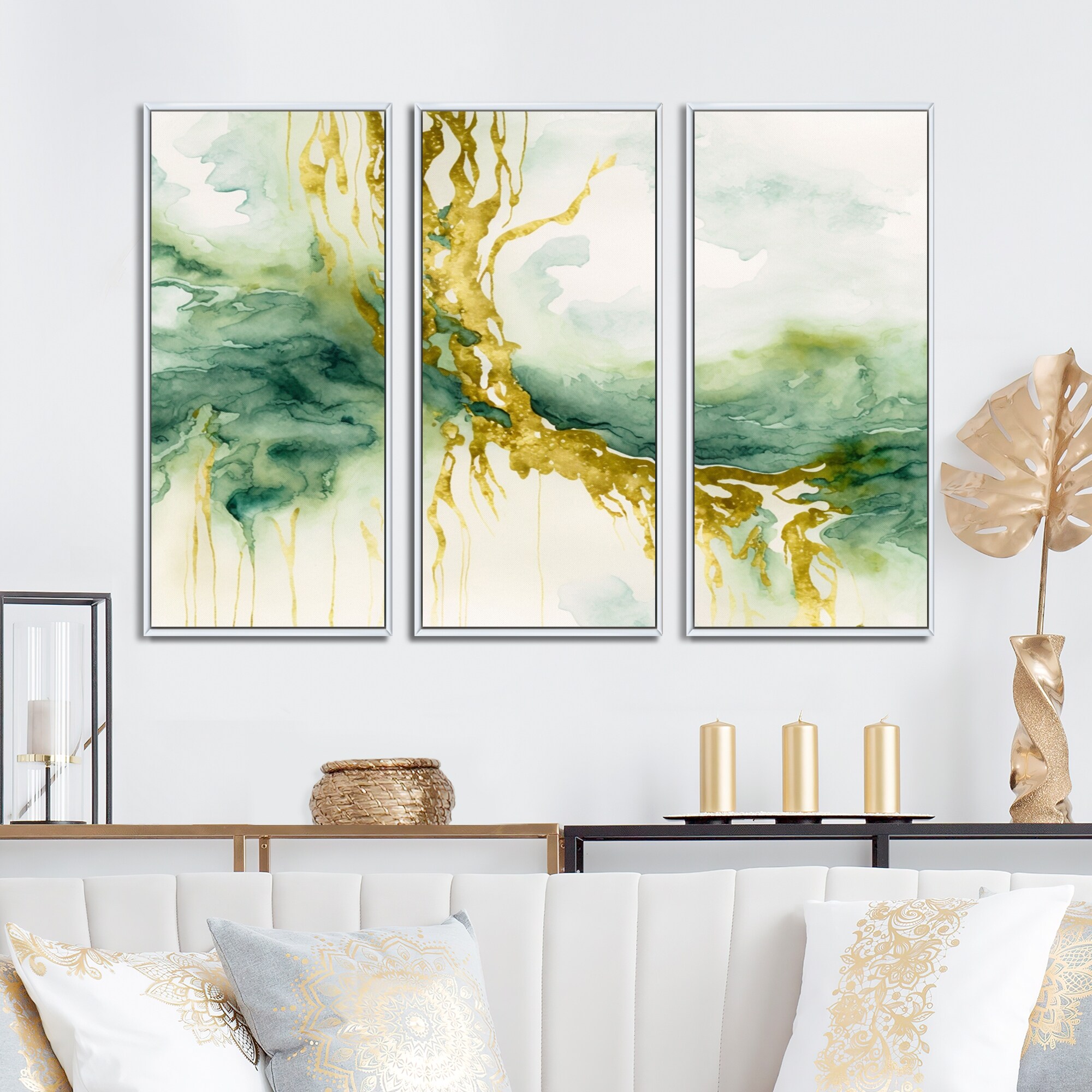 Designart "Awakenings In Spanish Moss I" Abstract Liquid Ink Framed Canvas Wall Art Print - 3 Panels