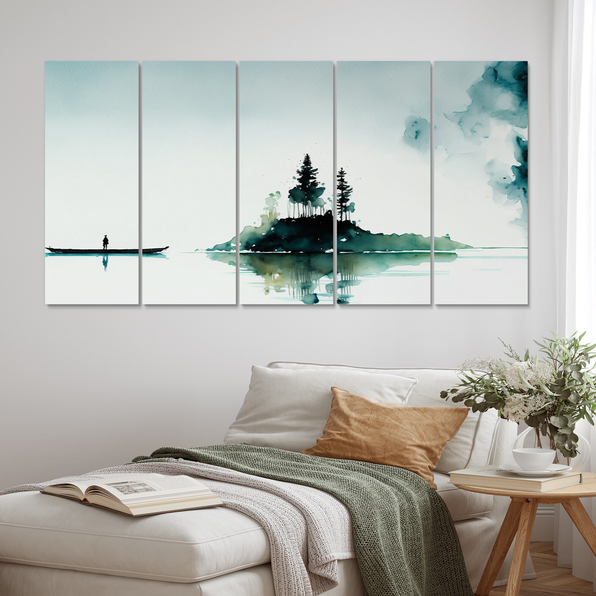 Designart "Little Boat By the Spanish Moss Island" Landscape Forest Multipanel Canvas Wall Art
