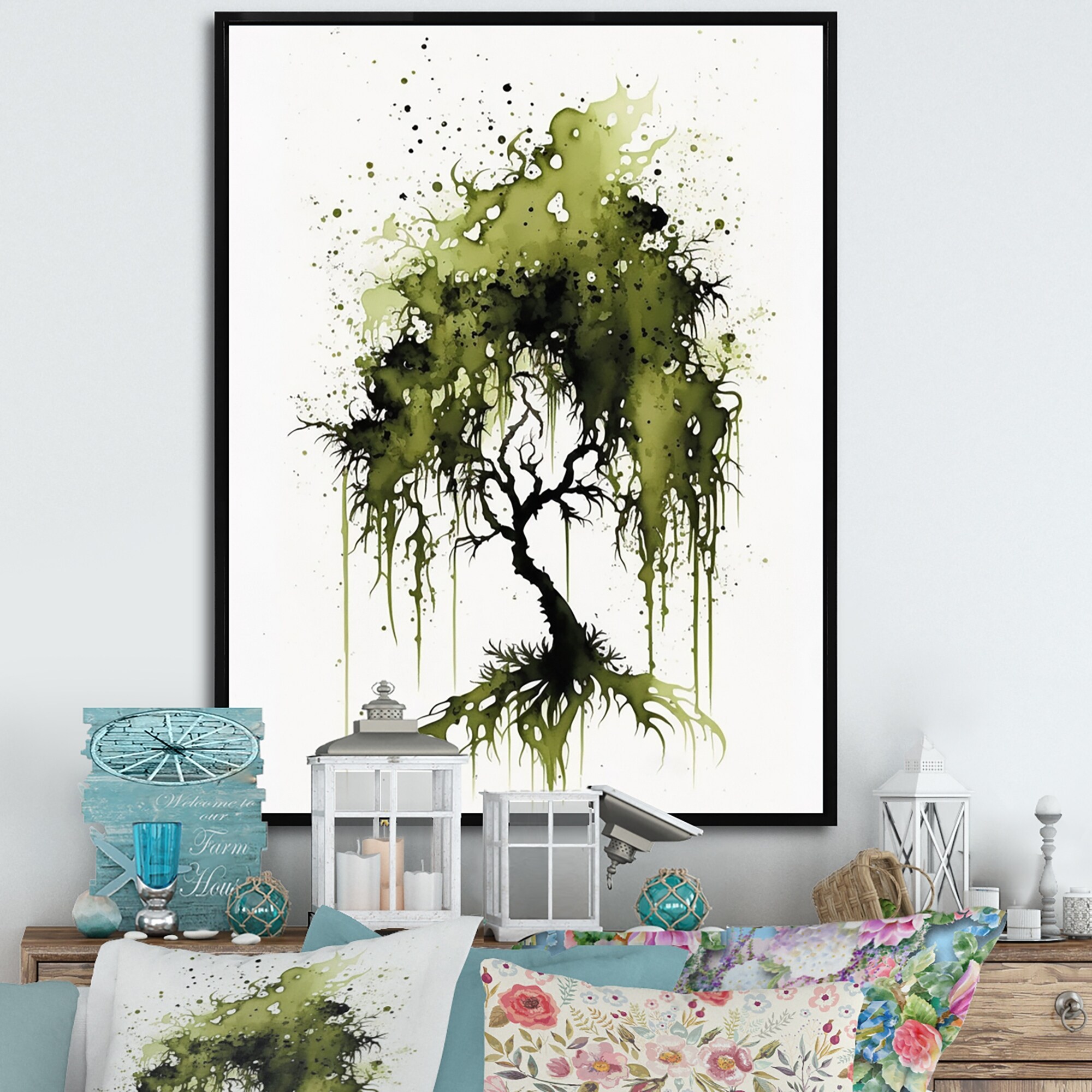 Designart "Spanish Moss Green Tree" Tree Framed Canvas Wall Art Print