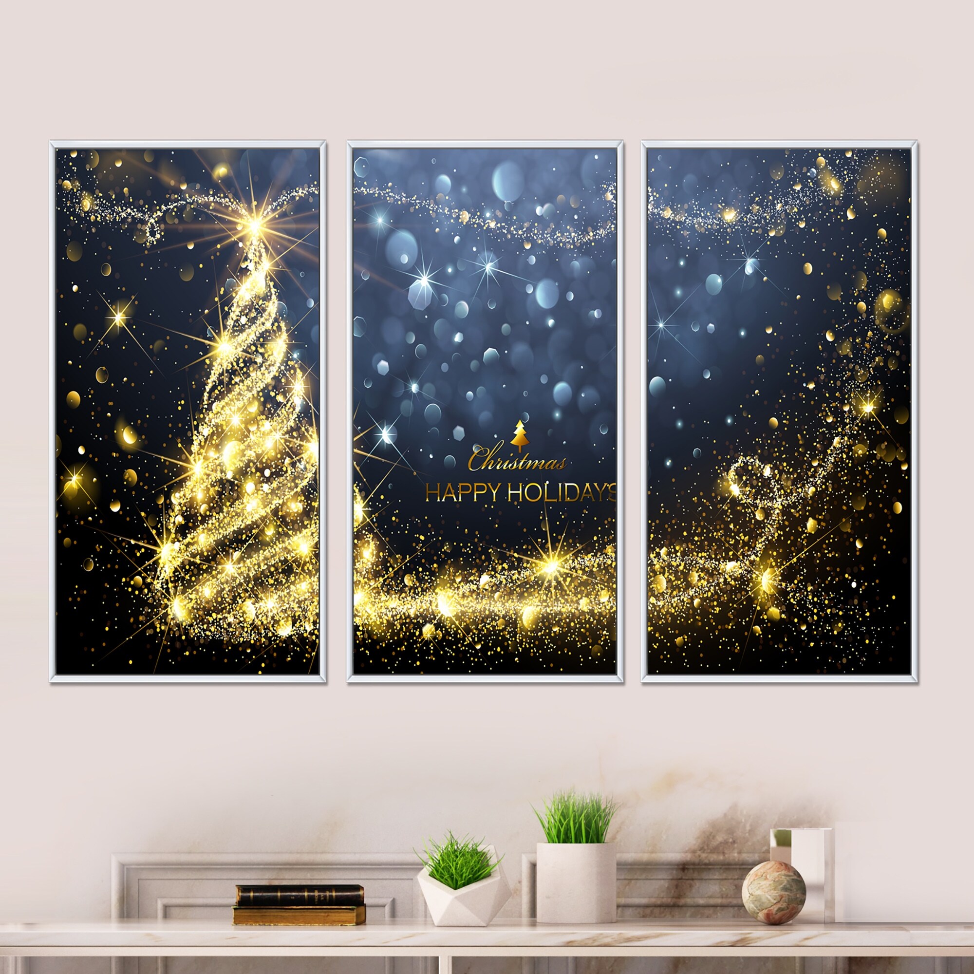 Designart "Sparkling Shining Light Christmas Tree" Contemporary Framed Canvas Wall Art Set of 3 - 4 Colors of Frames