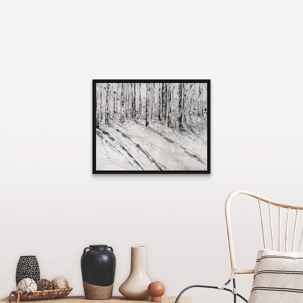 "Birch Moon Sparkle" Black Float Frame Canvas Art