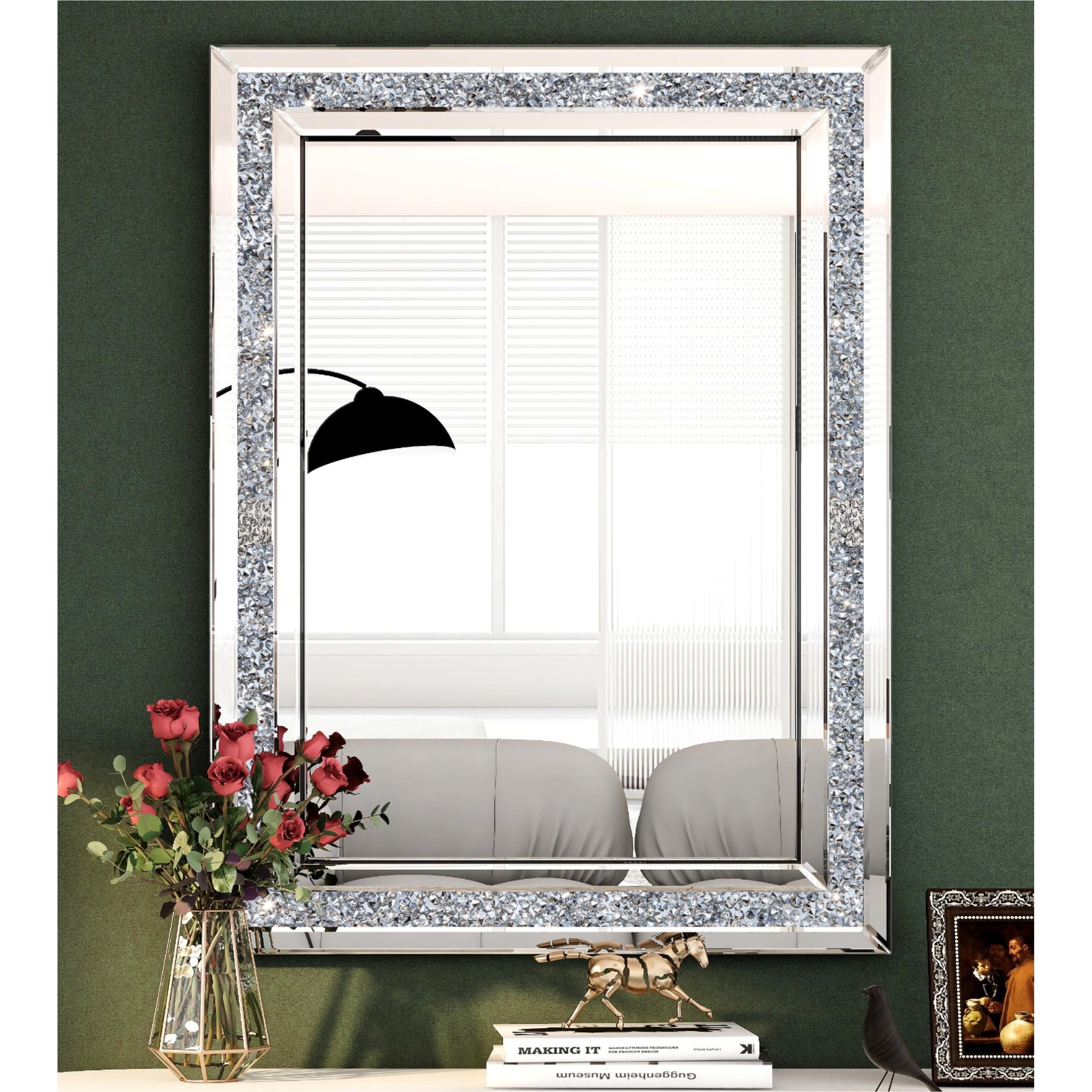 Sparkling Cyrstal Framed Accent Mirror Silver Wall Mirror