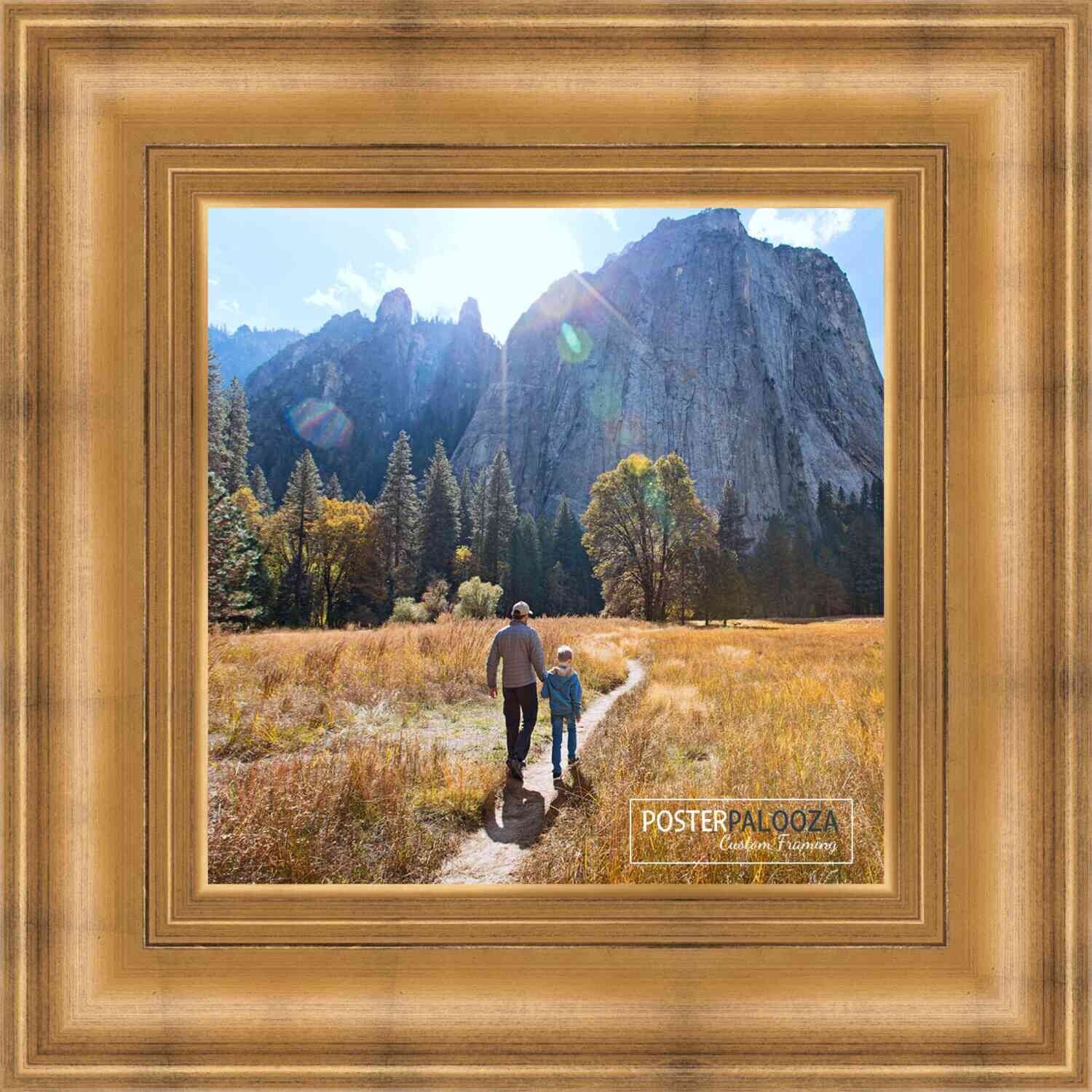 16x16 Traditional Gold Complete Wood Square Picture Frame with UV Acrylic, Foam Board Backing, & Hardware
