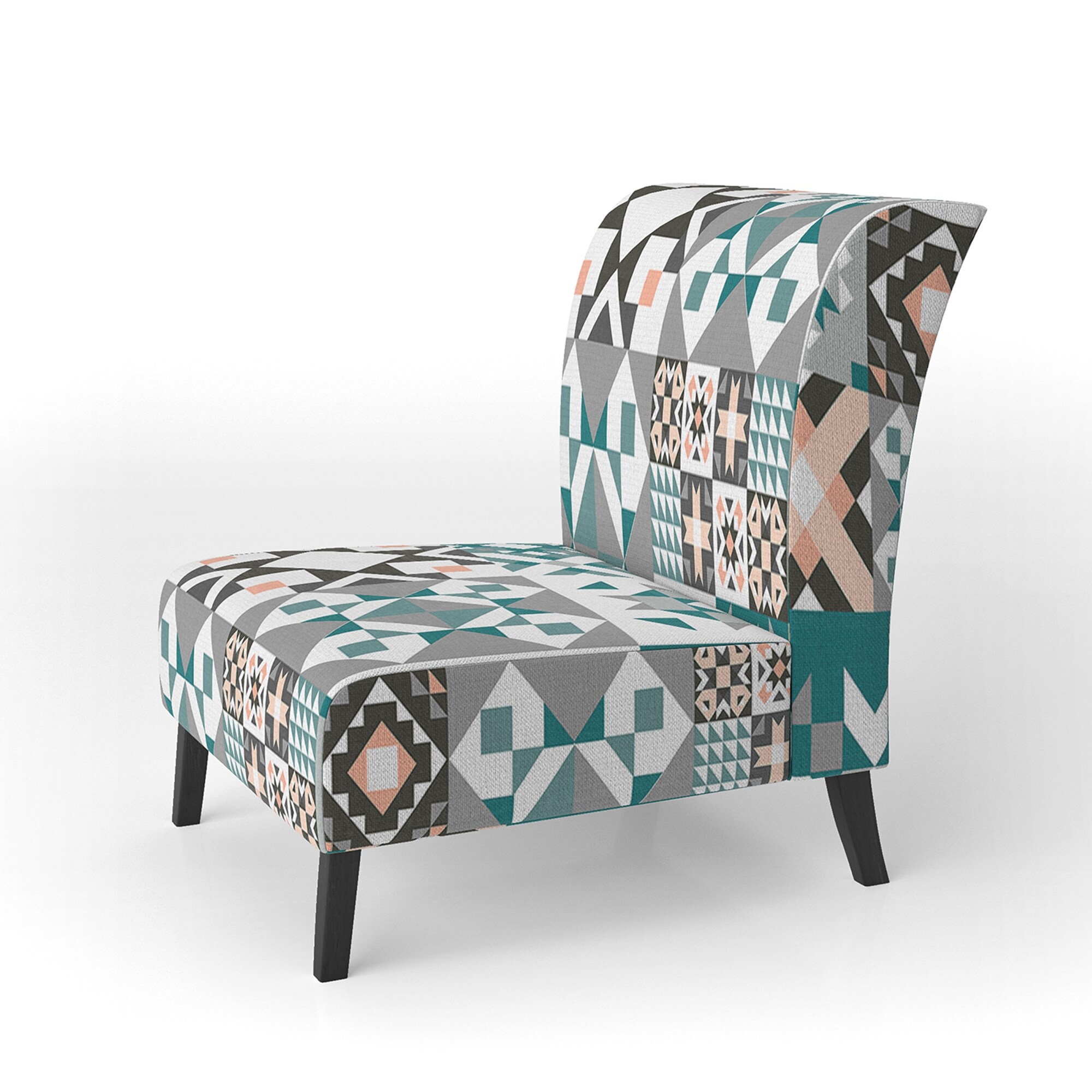 Designart "Multicolor Square Patchwork" Upholstered Patterned Accent Chair and Arm Chair