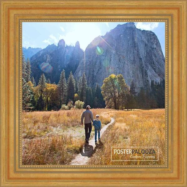 28x28 Traditional Gold Complete Wood Square Picture Frame with UV Acrylic, Foam Board Backing, & Hardware