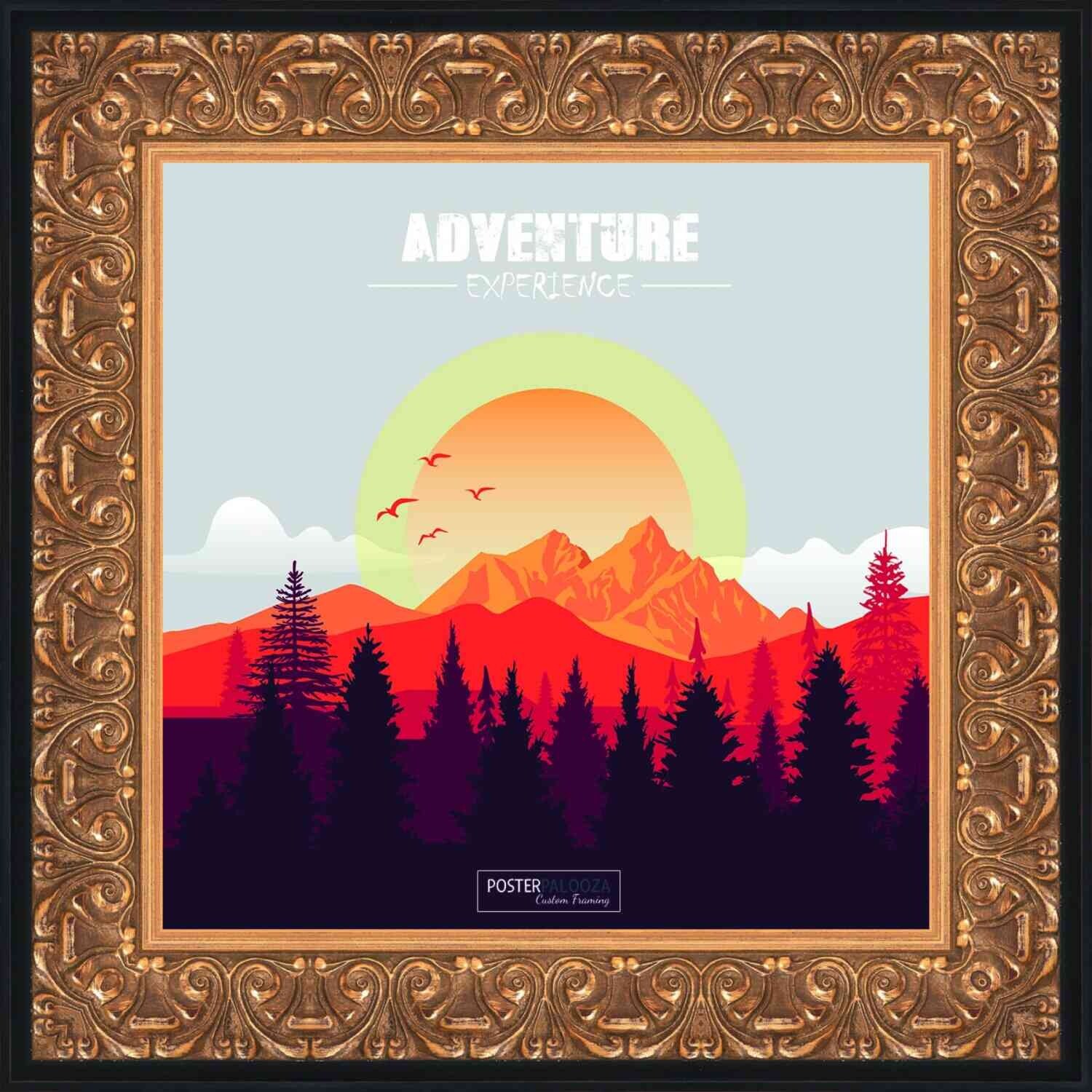 22x22 Ornate Gold Complete Wood Square Picture Frame with UV Acrylic, Foam Board Backing, & Hardware