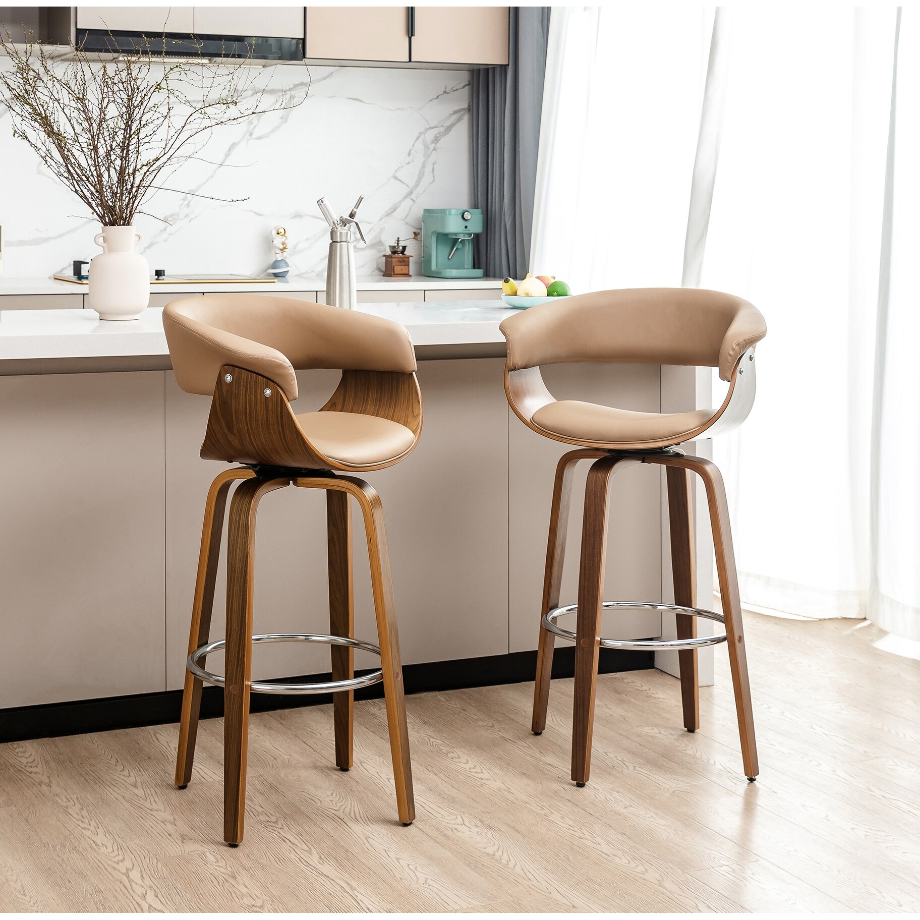 Glitzhome Set of 2 Modern 40"H Bar Height Wooden Swivel Bar Stools