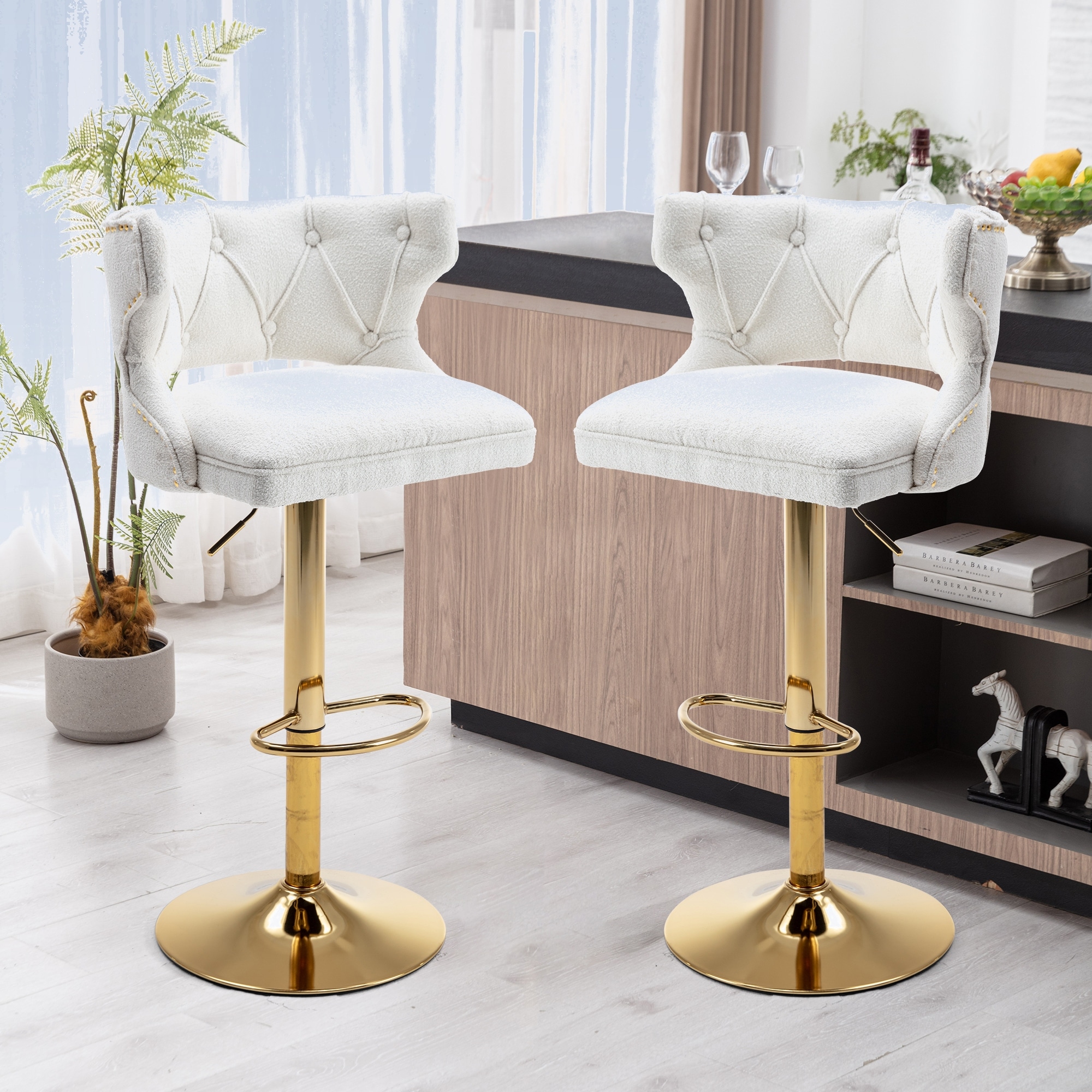 Modern Style Set of 2 Upholstered Adjustable Seat Height from 25-33 Inch,Chrome Base Bar Stools with Backs Comfortable Tufted