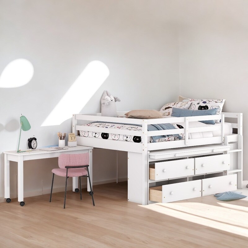 Twin Over Twin Bunk Bed with Storage Shelf and Drawer
