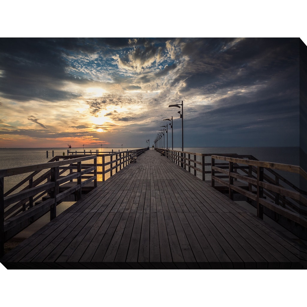Designart "Brilliant Sunrise over Sea Pier" Modern Framed Canvas Art Print
