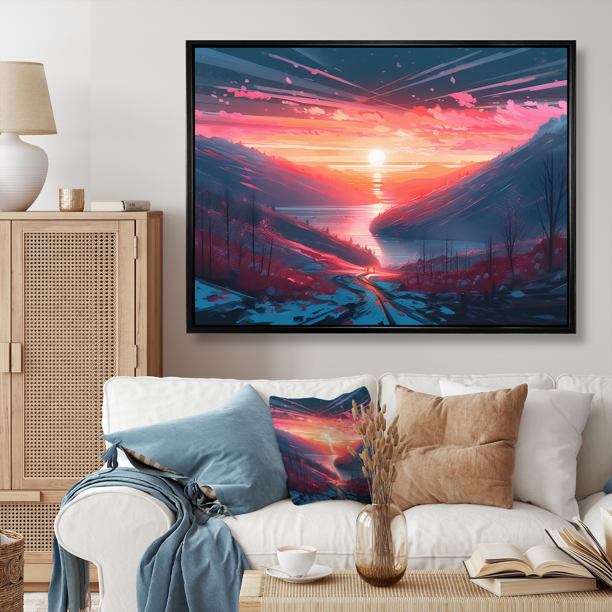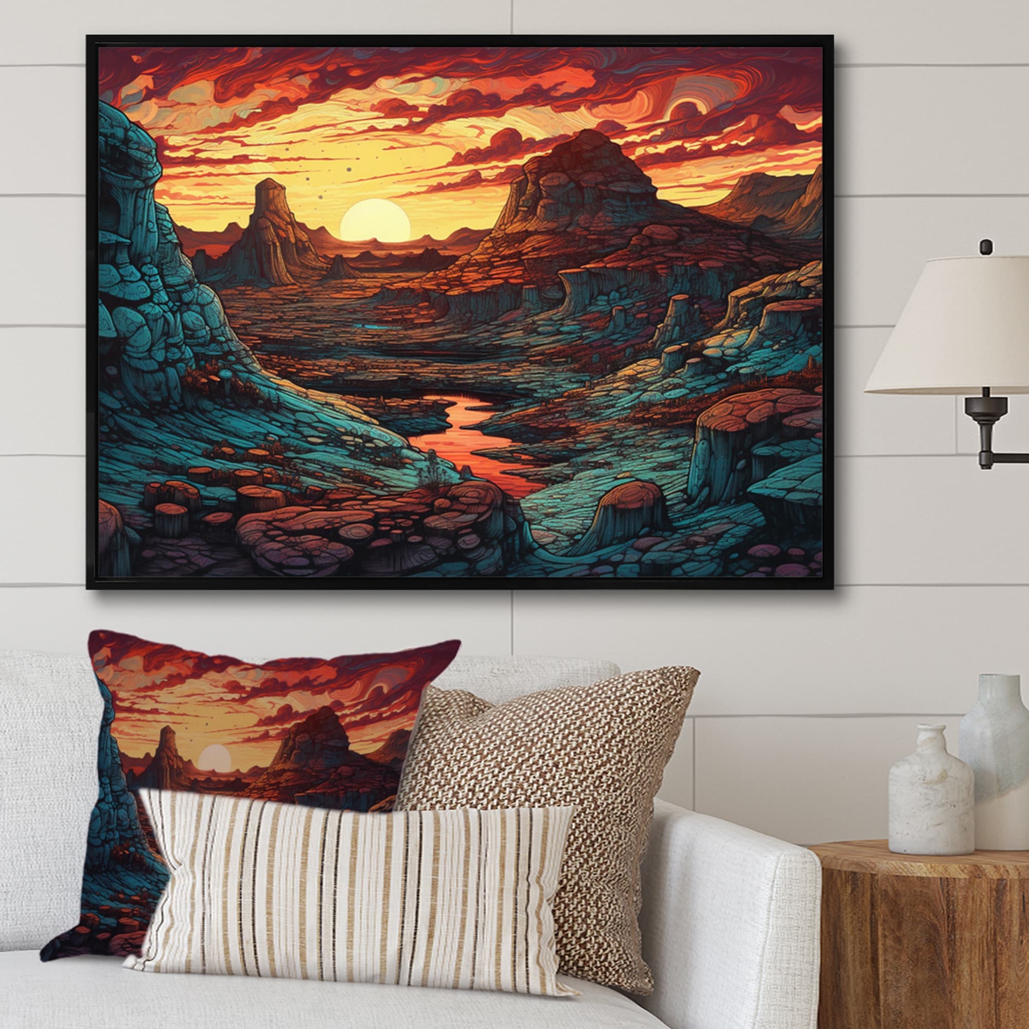 Designart "Vibrant Sunrise Over the Desert Ii" Landscape Desert Framed Canvas Print