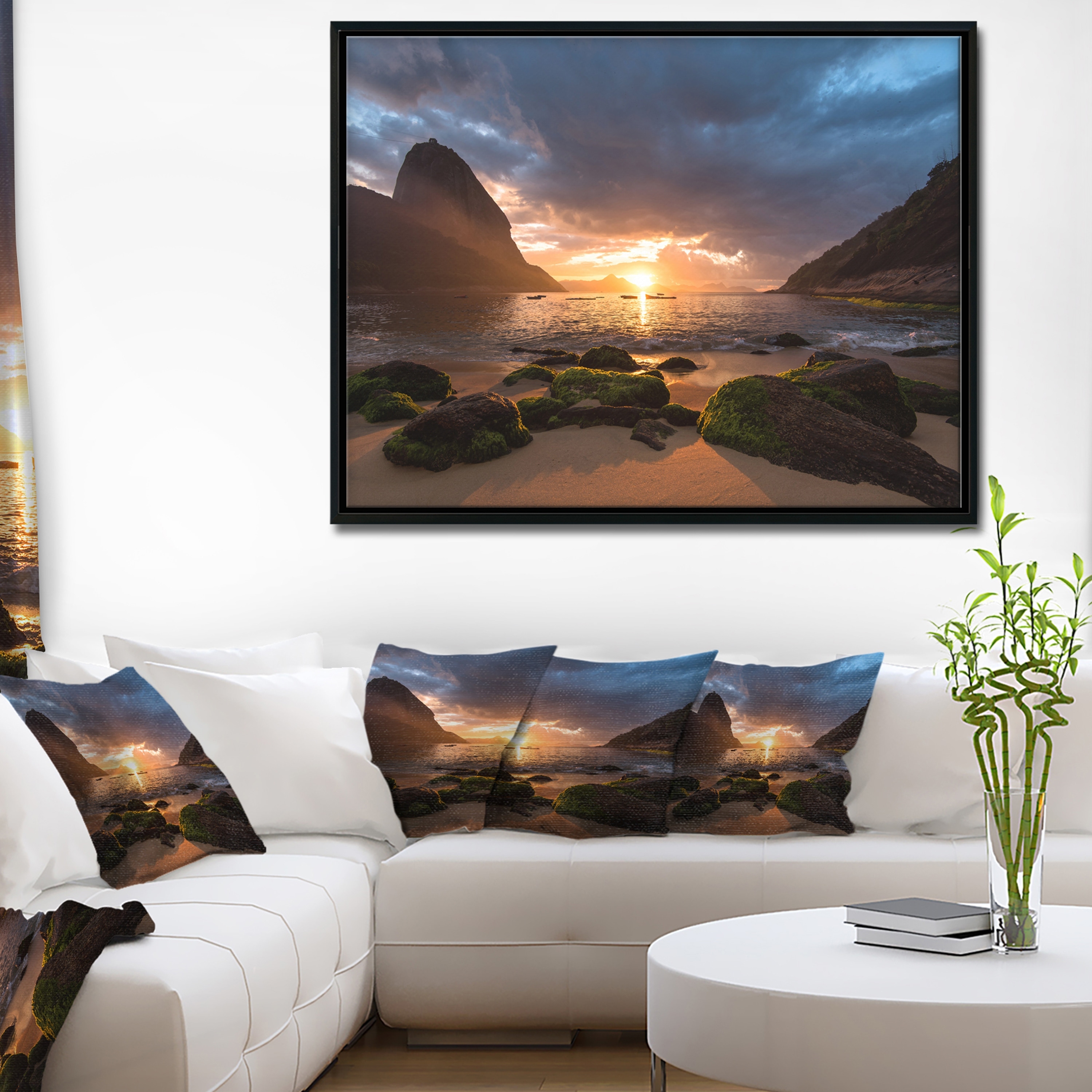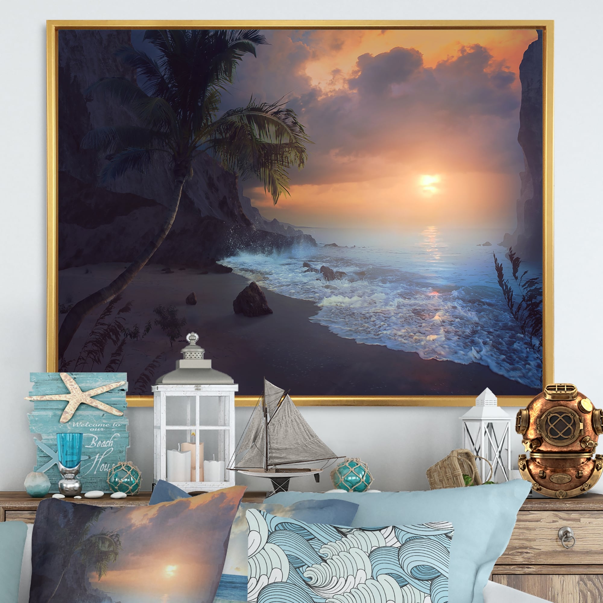 Designart "Sunrise Peaceful Beach" Nautical & Coastal Framed Canvas artwork