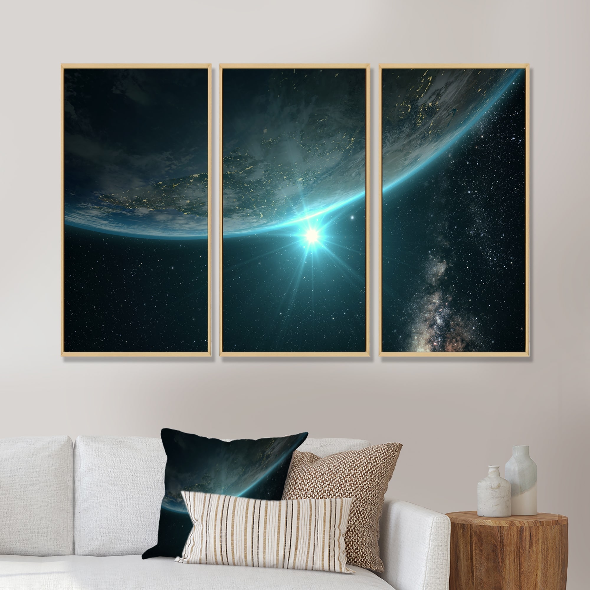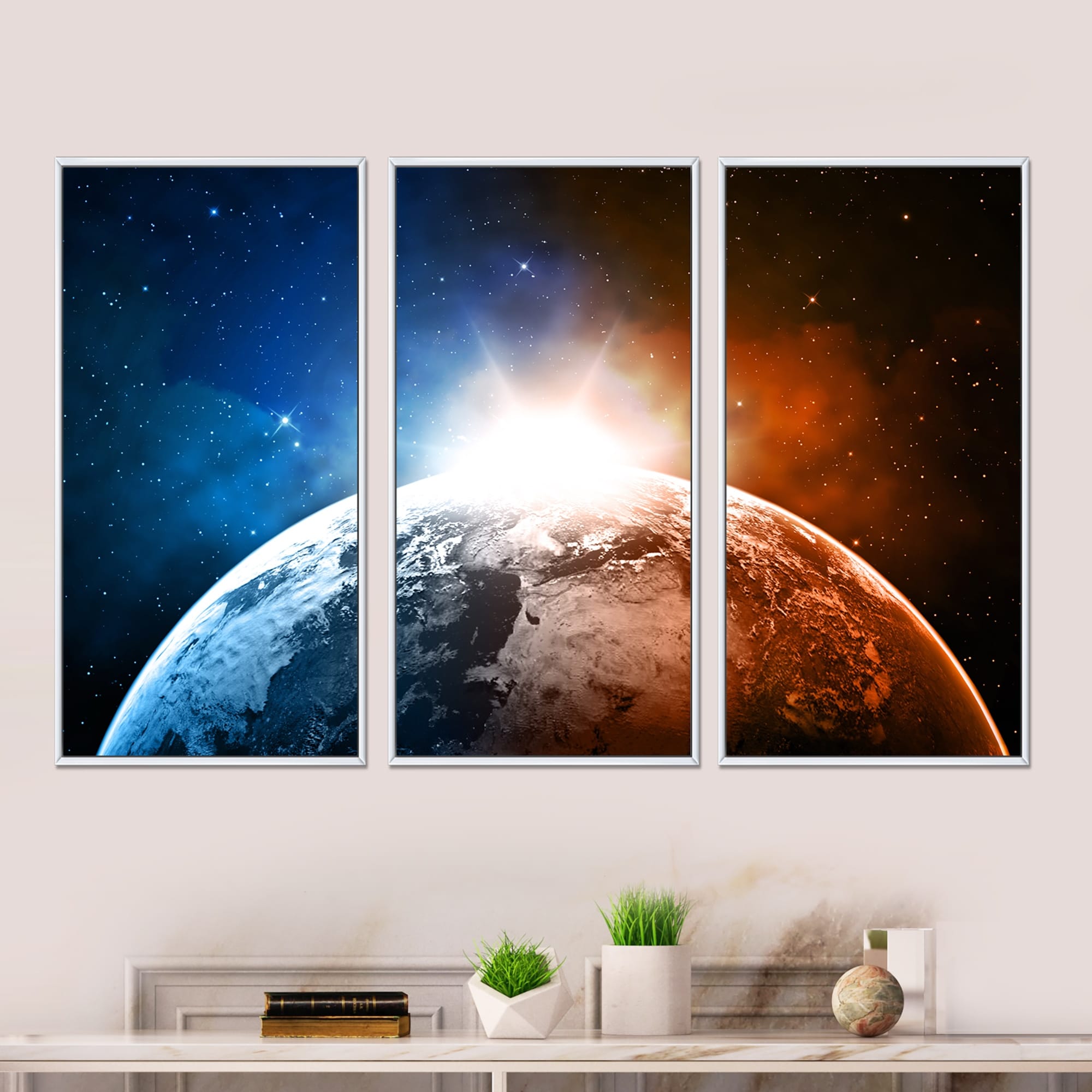 Designart "Sunrise in Earth from Space" Landscape Framed Art Set of 3 - 4 Colors of Frames