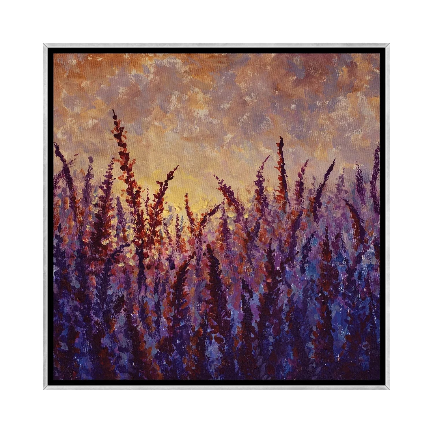 iCanvas "Beautiful Field Purple Flowers Lavender Lupine At Sunrise Sunset" by Valery Rybakow Framed