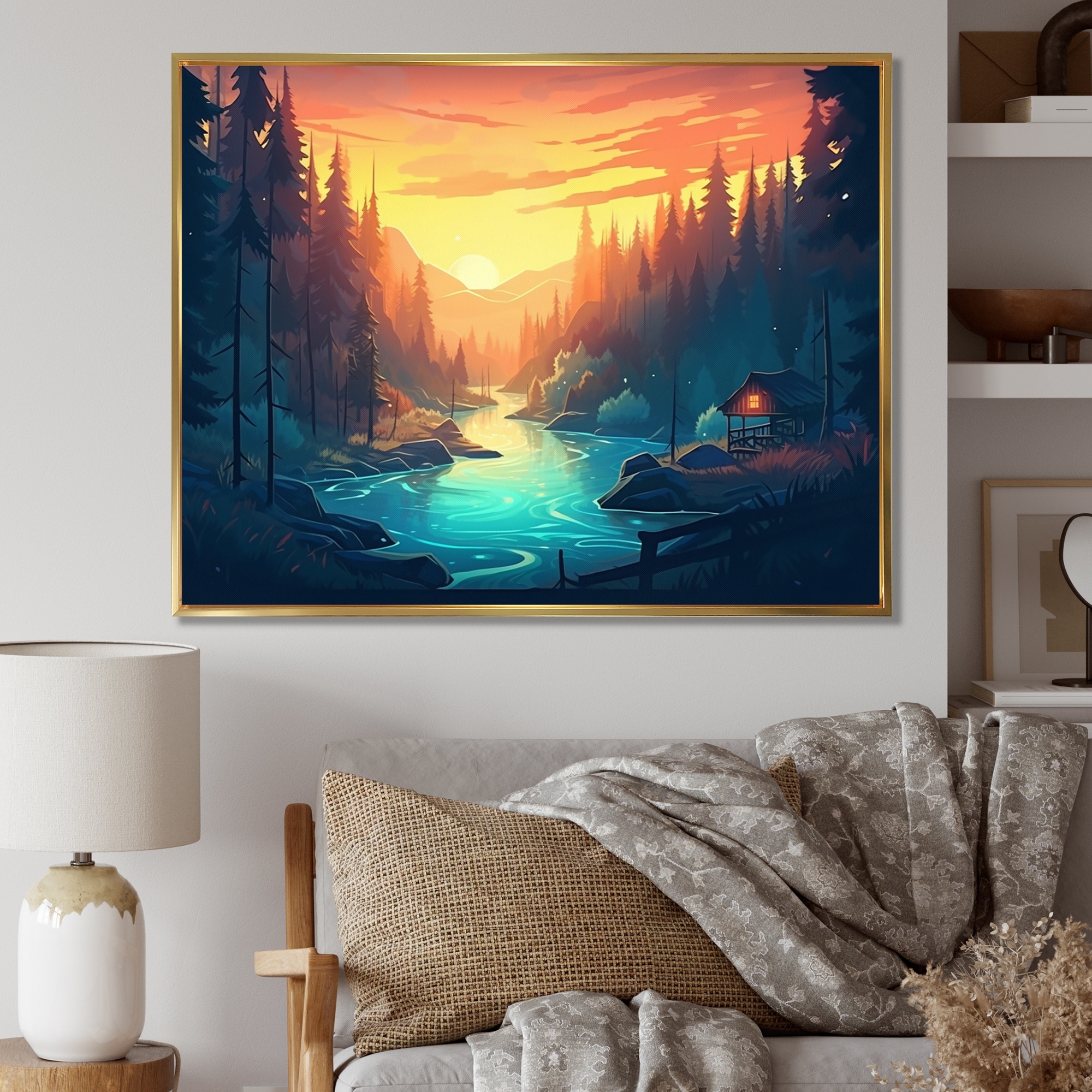 Designart "Vibrant Forest With Sunrise I" Landscape Forest Framed Wall Art Prints