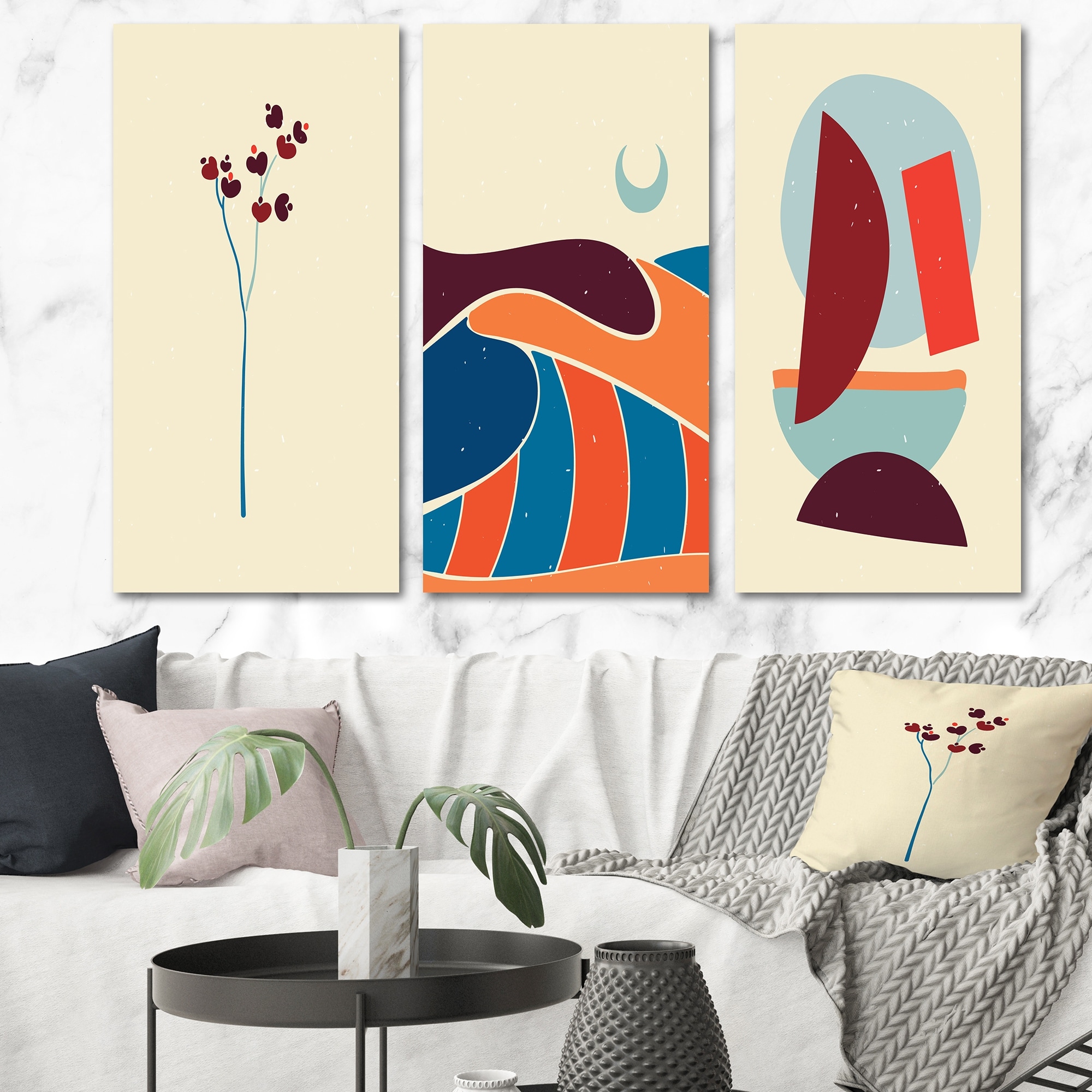 Designart 'Retro Sunrise Landscape With Moon II' Mid-Century Modern Art Set of 3 Pieces