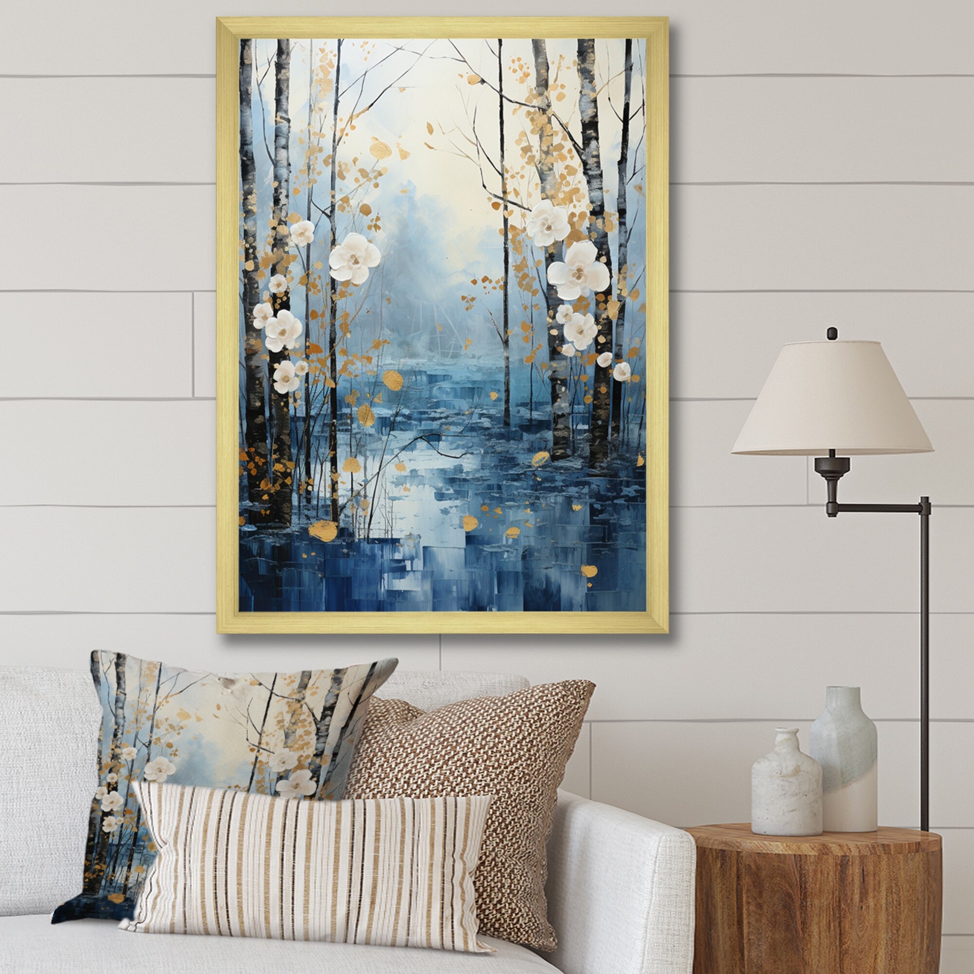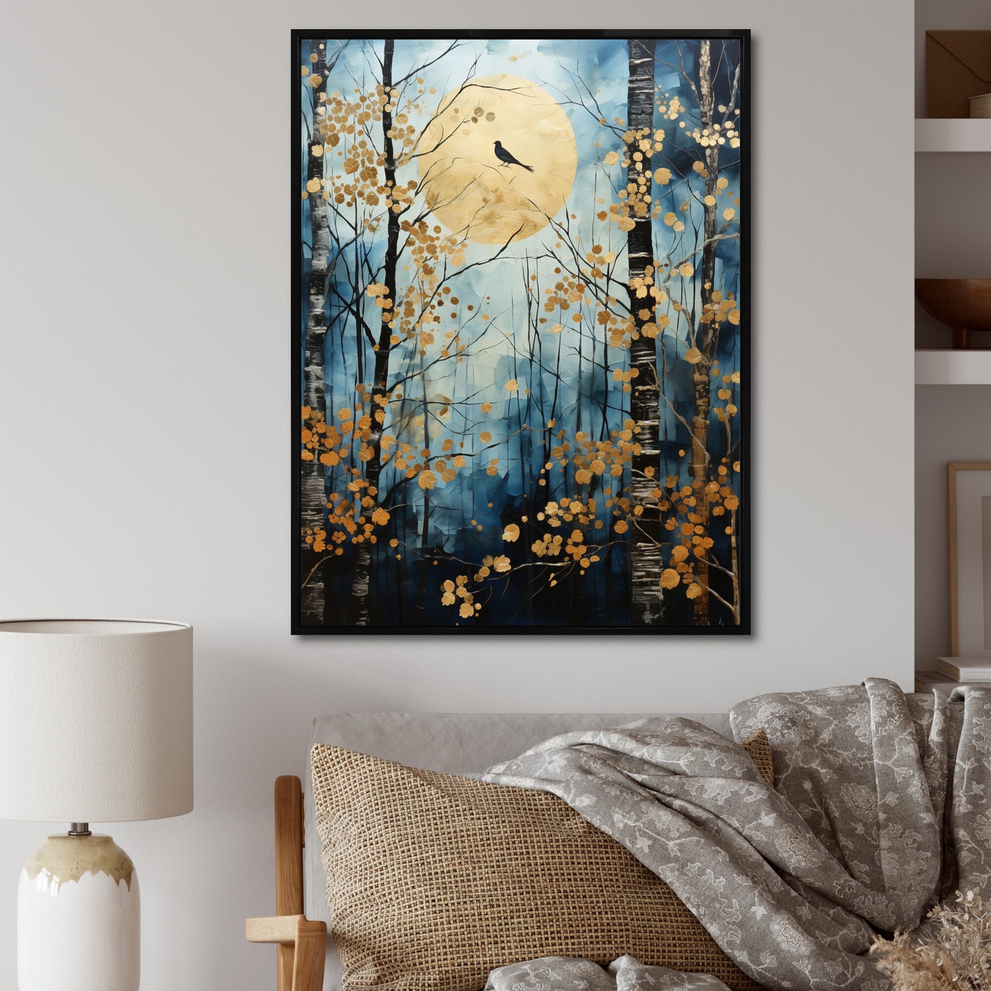 Designart "Birch Woods Moonlit Symphony I" Tree Birch Framed Canvas Wall Art