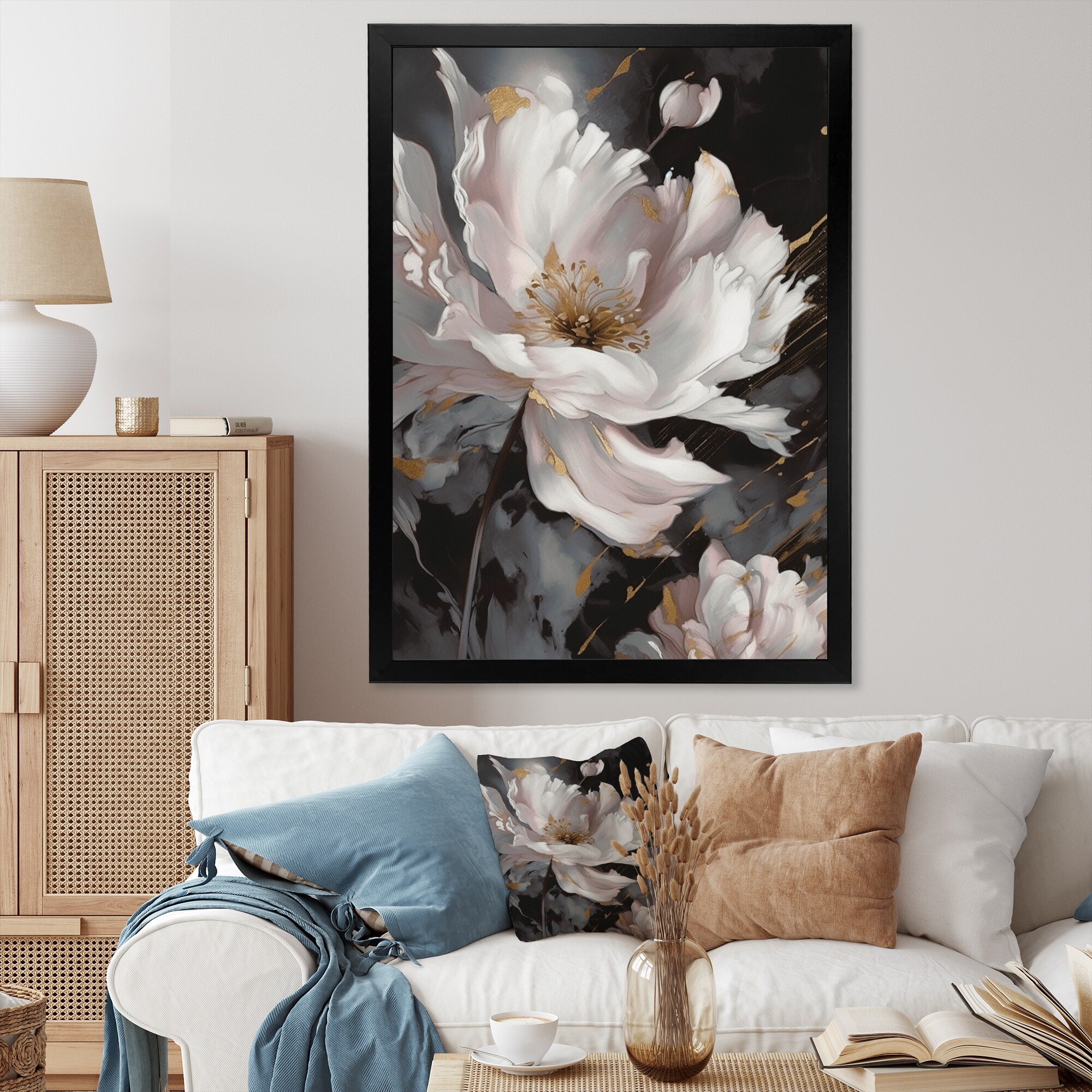 Designart "White And Gold Daisy Symphony Ii" Floral Daisy Framed Wall Art for Living Room