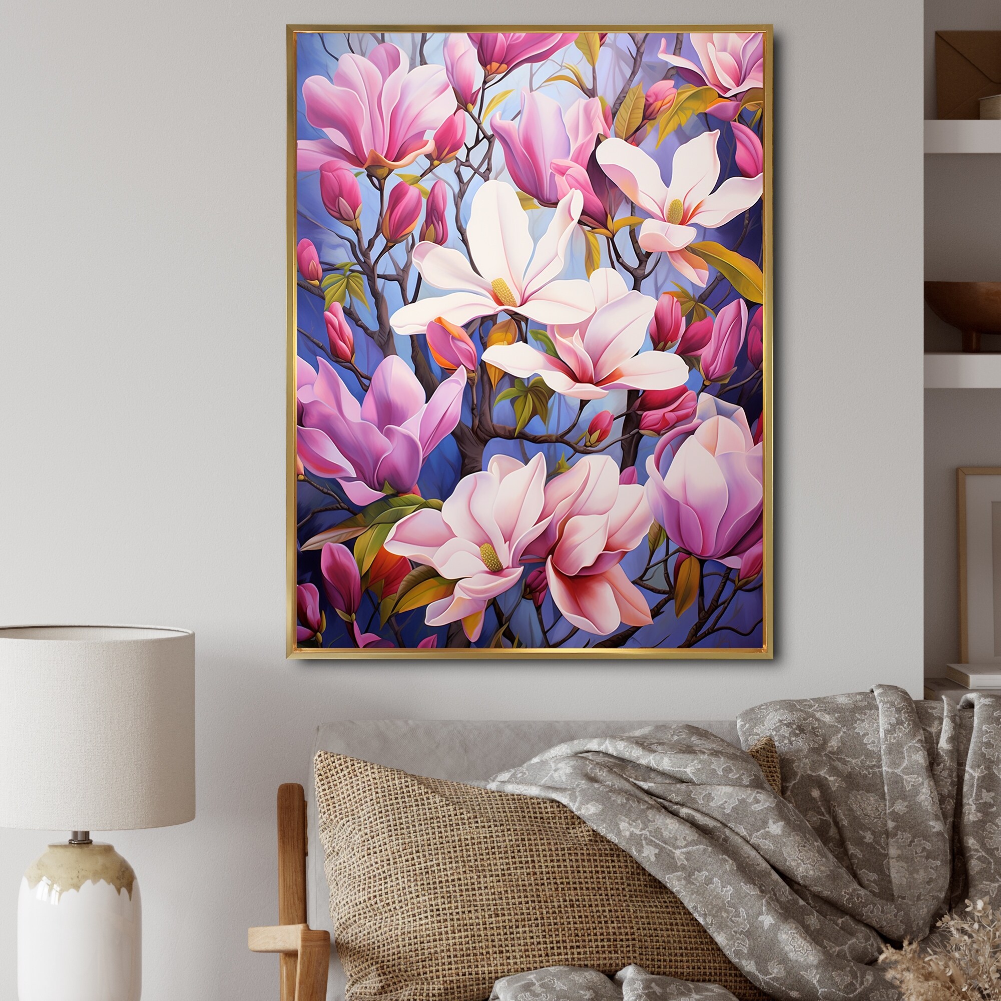 Designart "Pink White Magnolias Magnolia Symphony Ii" Magnolias Framed Canvas Print