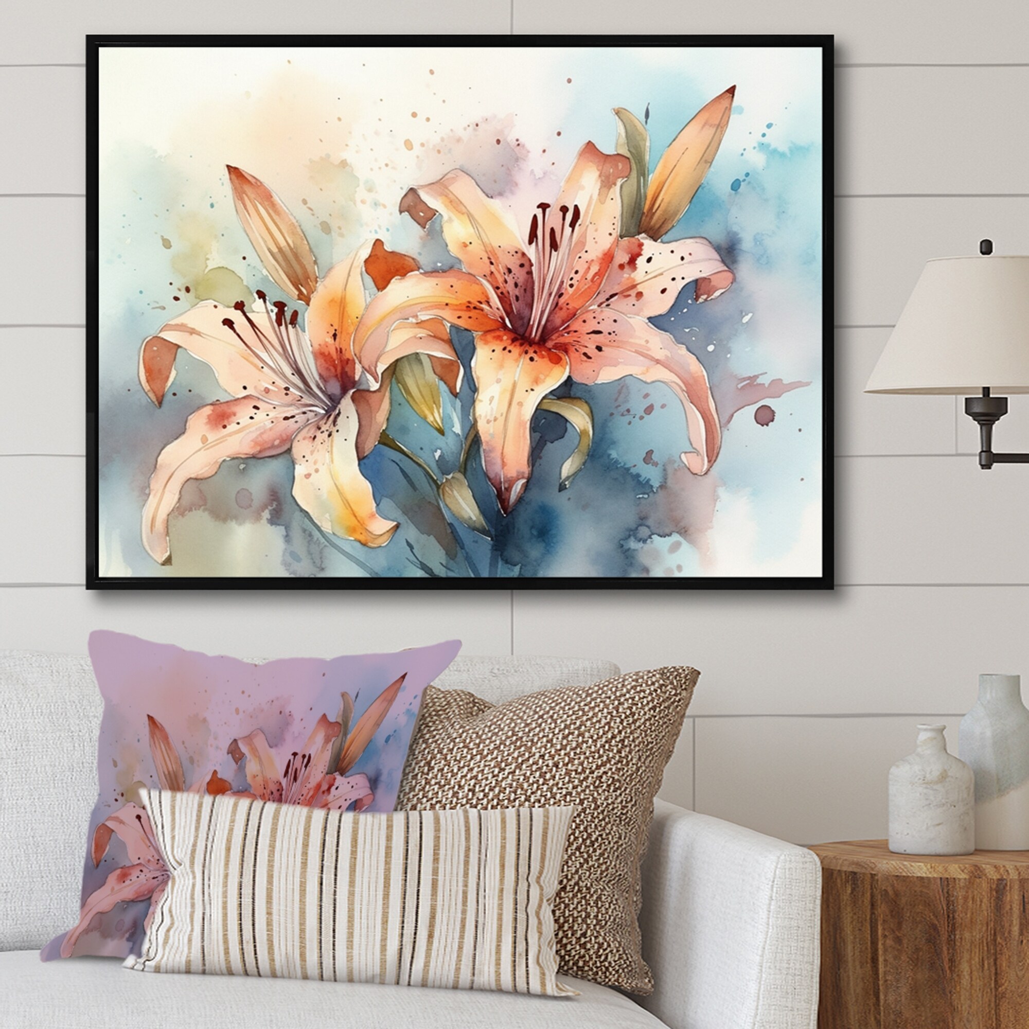Designart "Orange Lily Symphony I" Floral Lily Framed Wall Art for Living Room