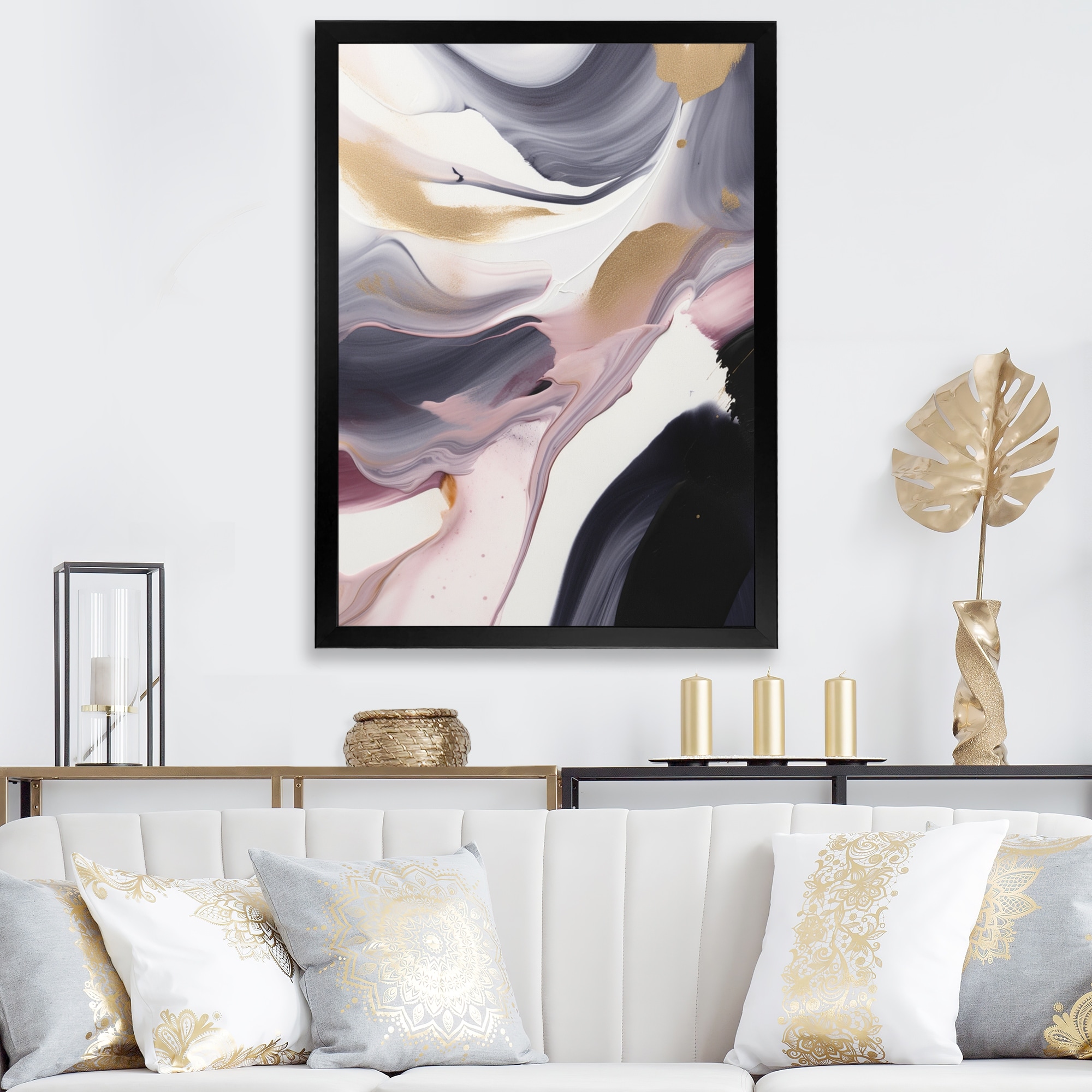 Designart "Grey And Gold Marble Symphony I" Abstract Marble Framed Canvas Prints