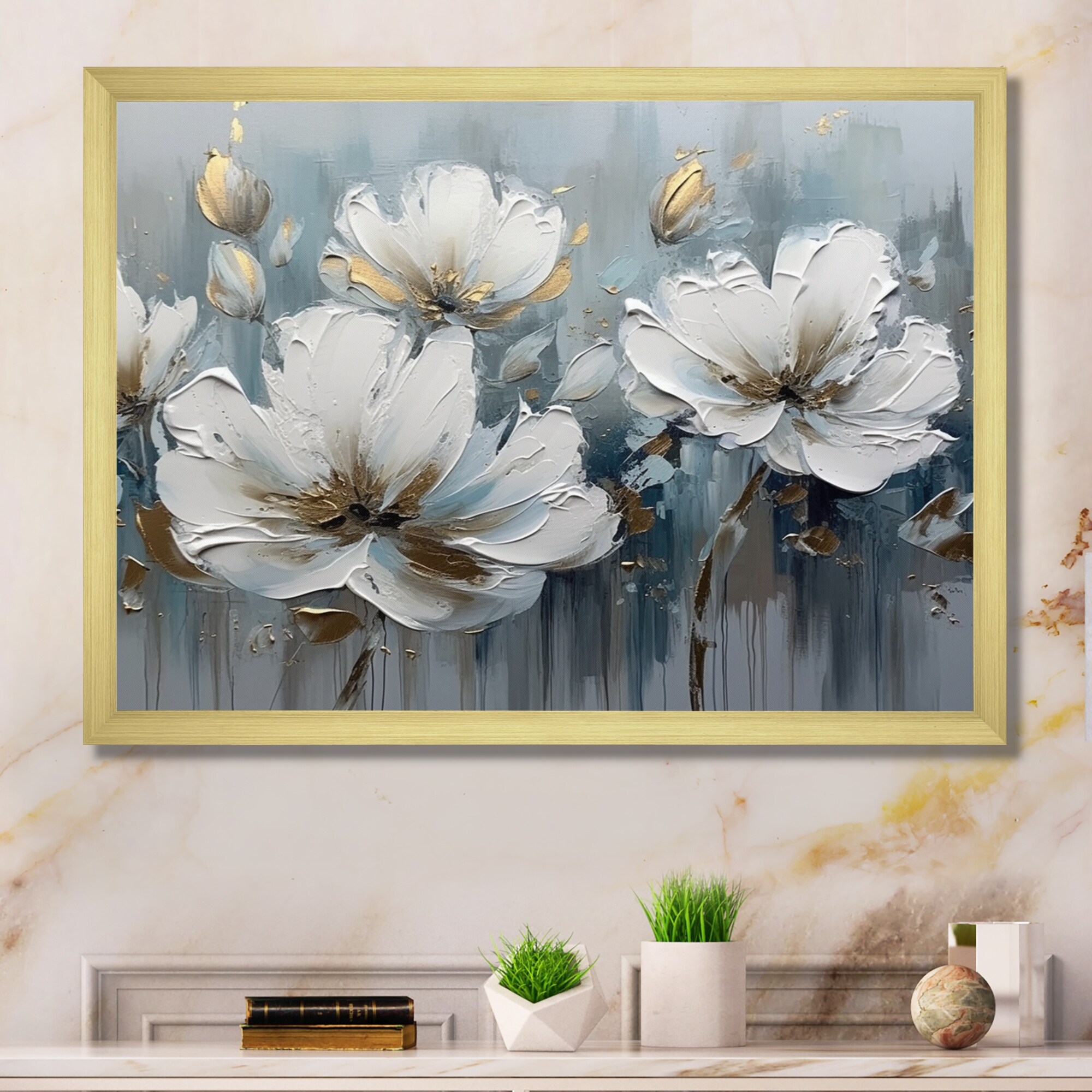 Designart "White And Gold Daisy Symphony V" Floral Daisy Framed Wall Art Prints