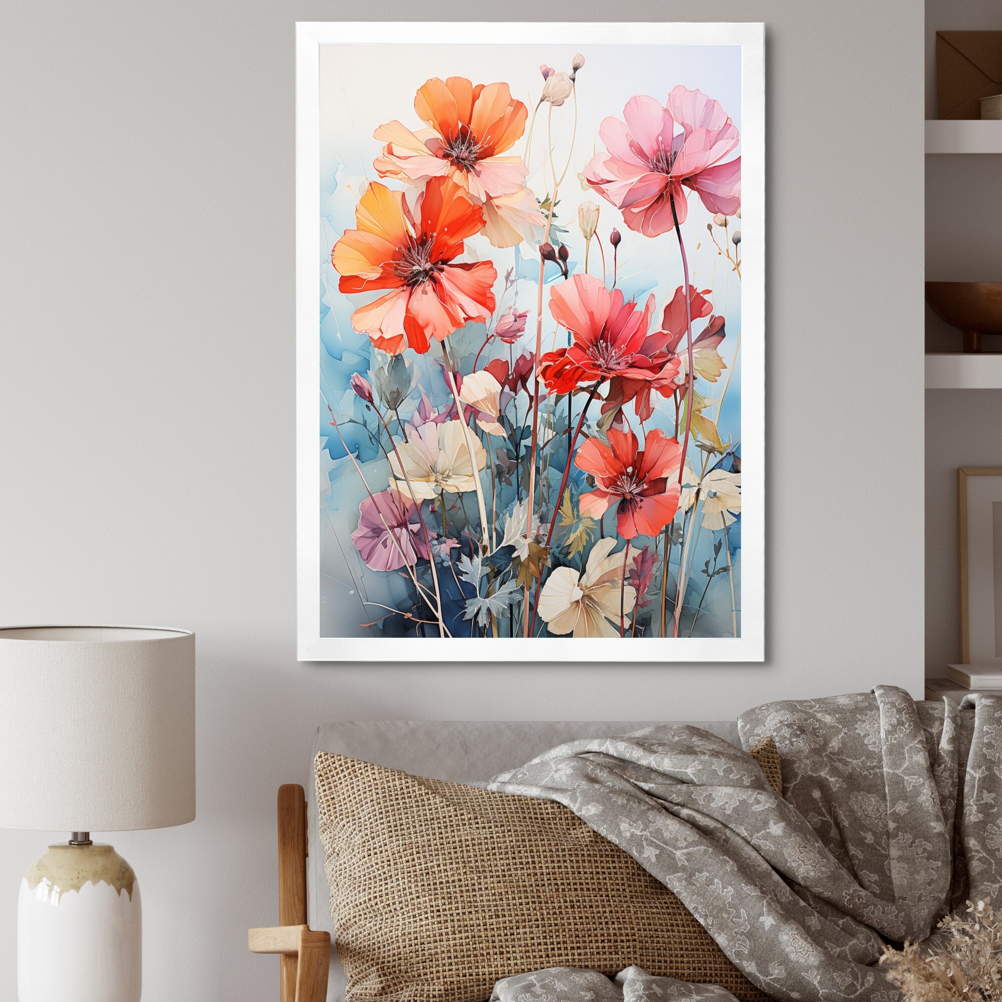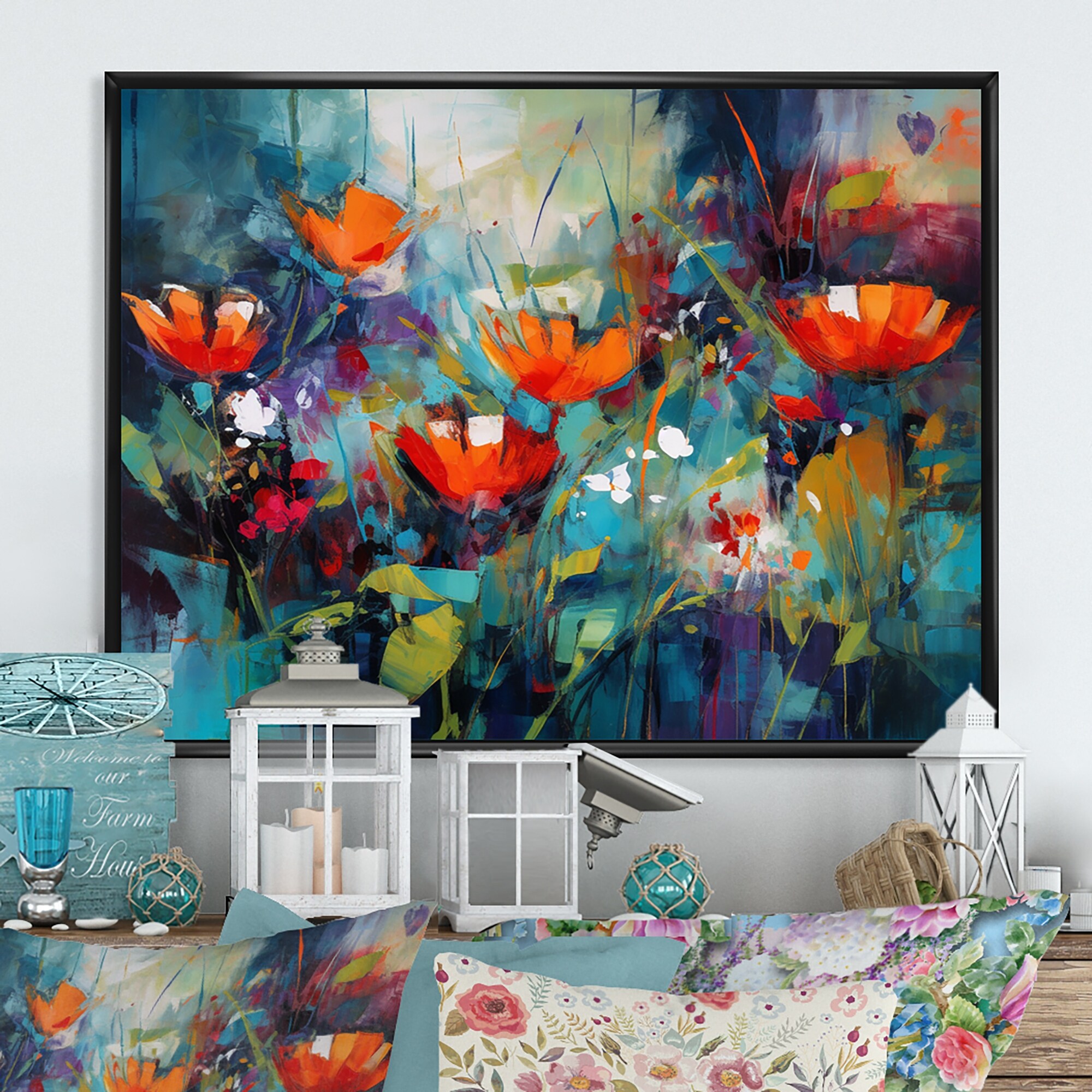 Designart "Red Vibrant Garden Symphony Vi" Floral Framed Wall Decor