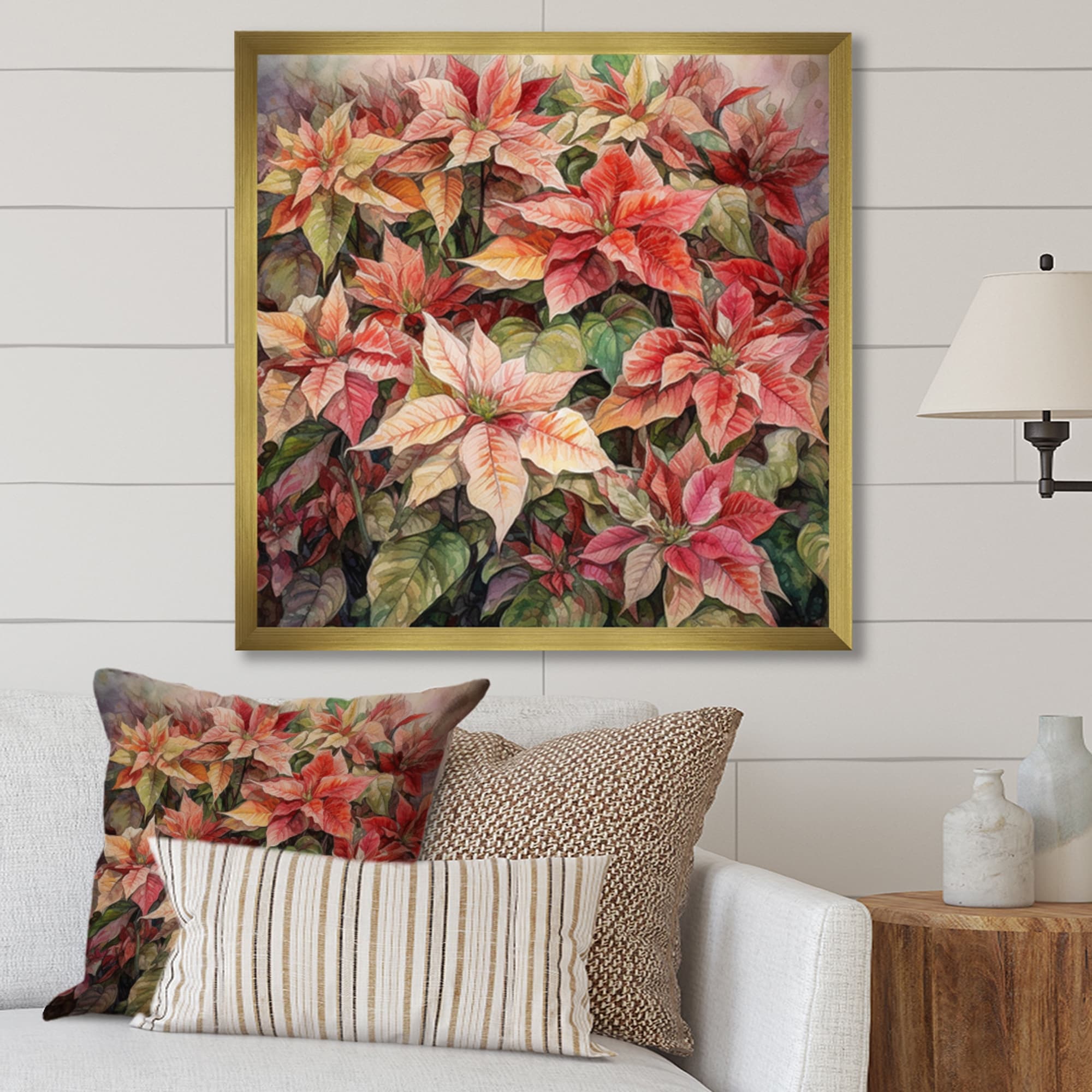 Designart "Red Poinsettia Symphony" Floral Poinsettia Framed Wall Decor