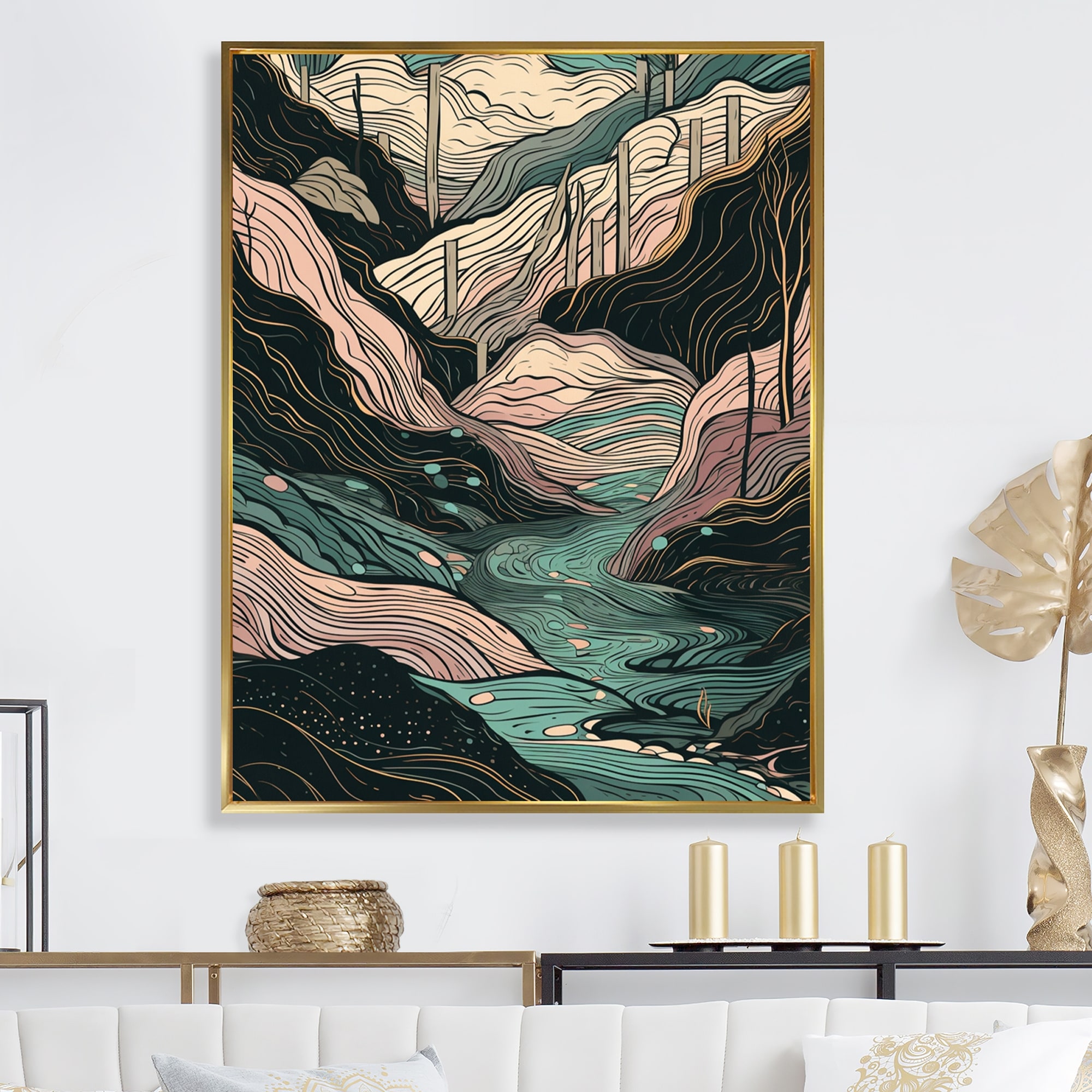 Designart "Green Linear Symphony Iii" Minimalism Line Art Framed Canvas Art Print
