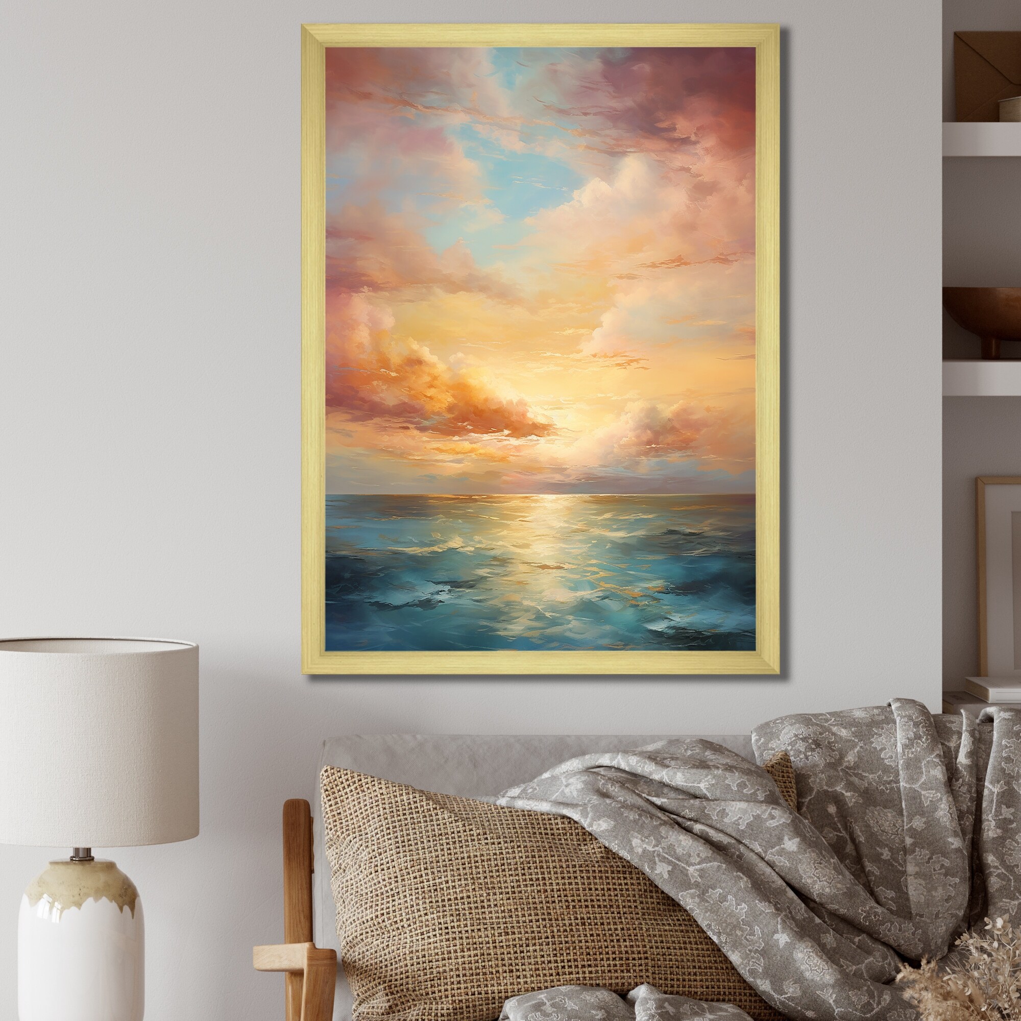 Designart "Ocean Sunset Celestial Symphony" Landscape Sunset Framed Canvas Wall Art