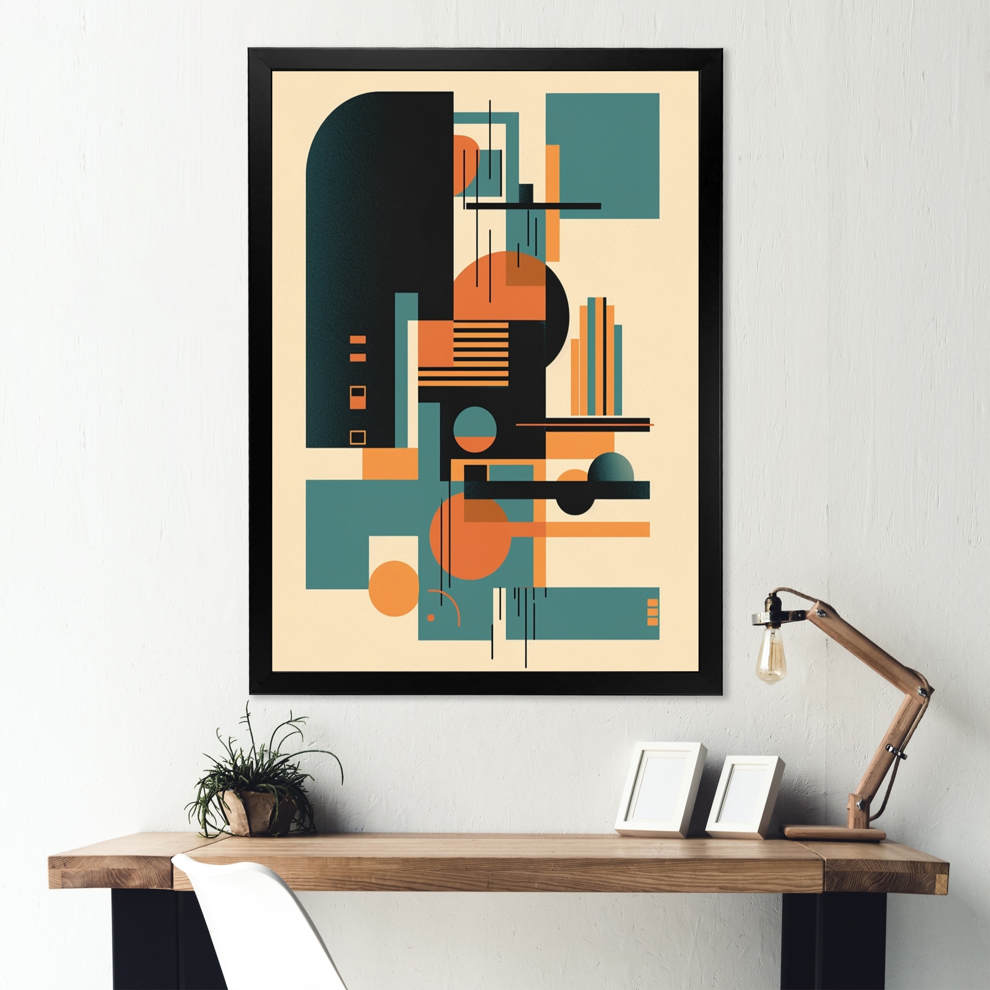 Designart "Blue And Orange Minimalistic Symphony Iv" Minimalism Framed Canvas Print