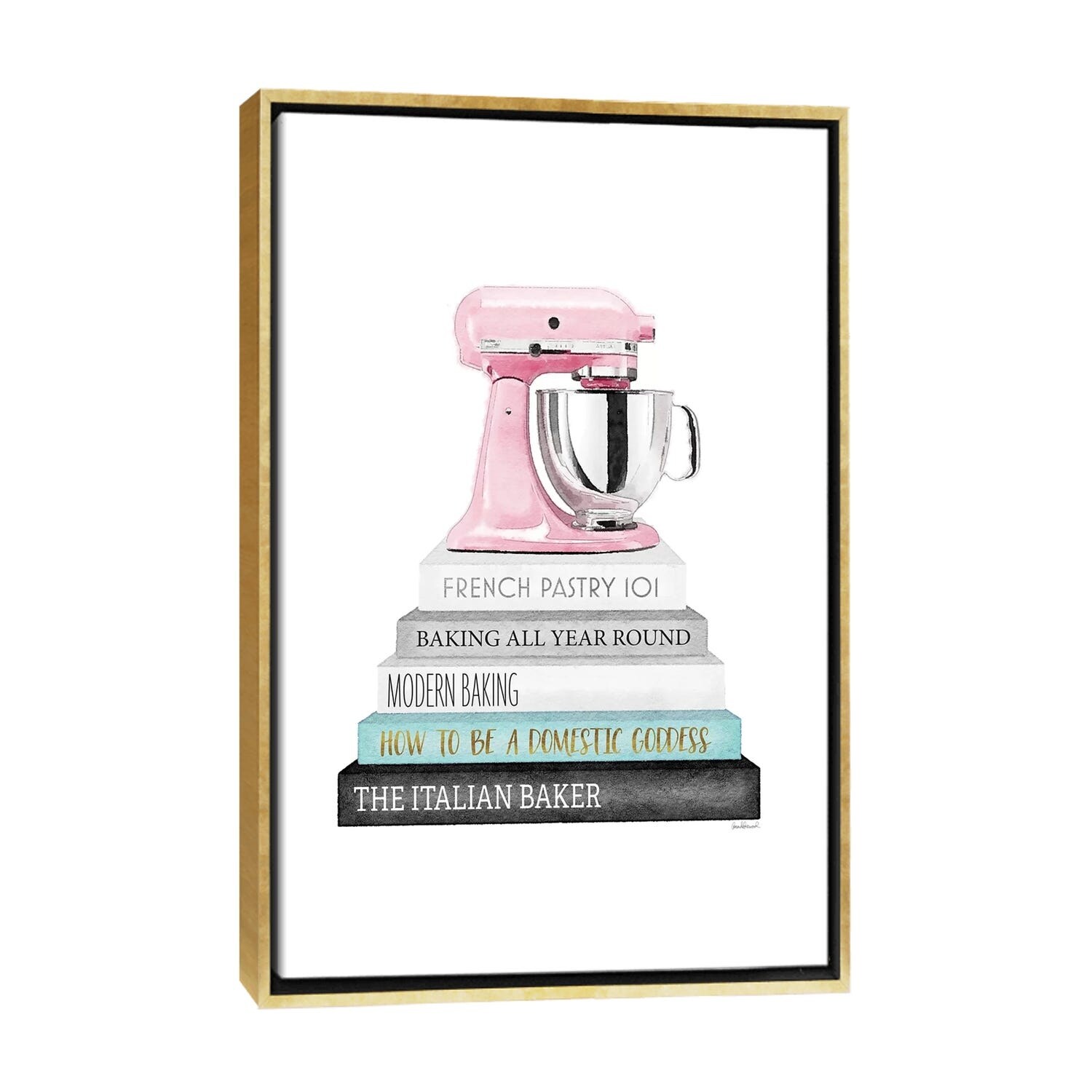 iCanvas "Baking Grey And Teal Bookstack With Pink Mixer" by Amanda Greenwood Framed Canvas Print