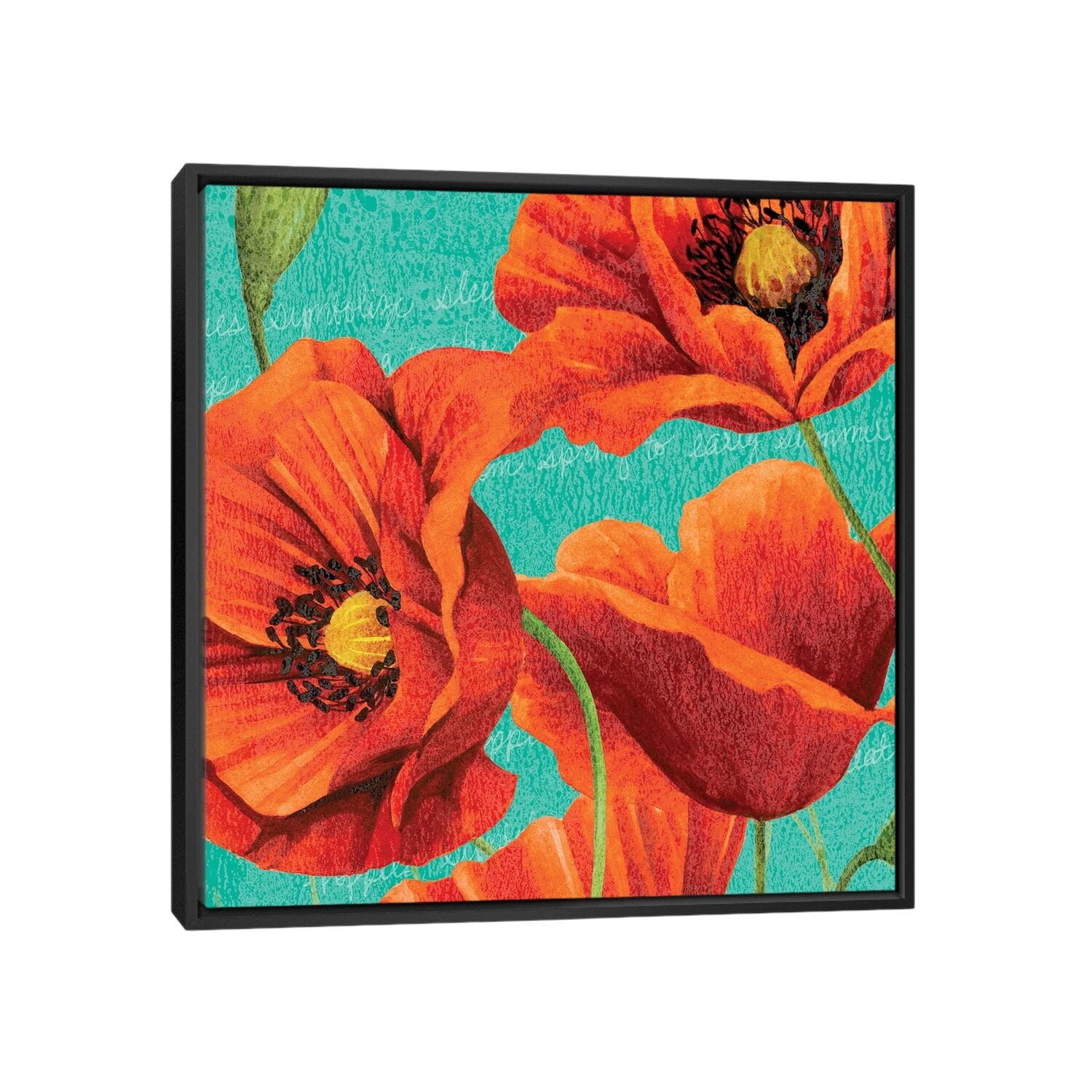 iCanvas "Red Poppies on Teal I" by Studio W Framed