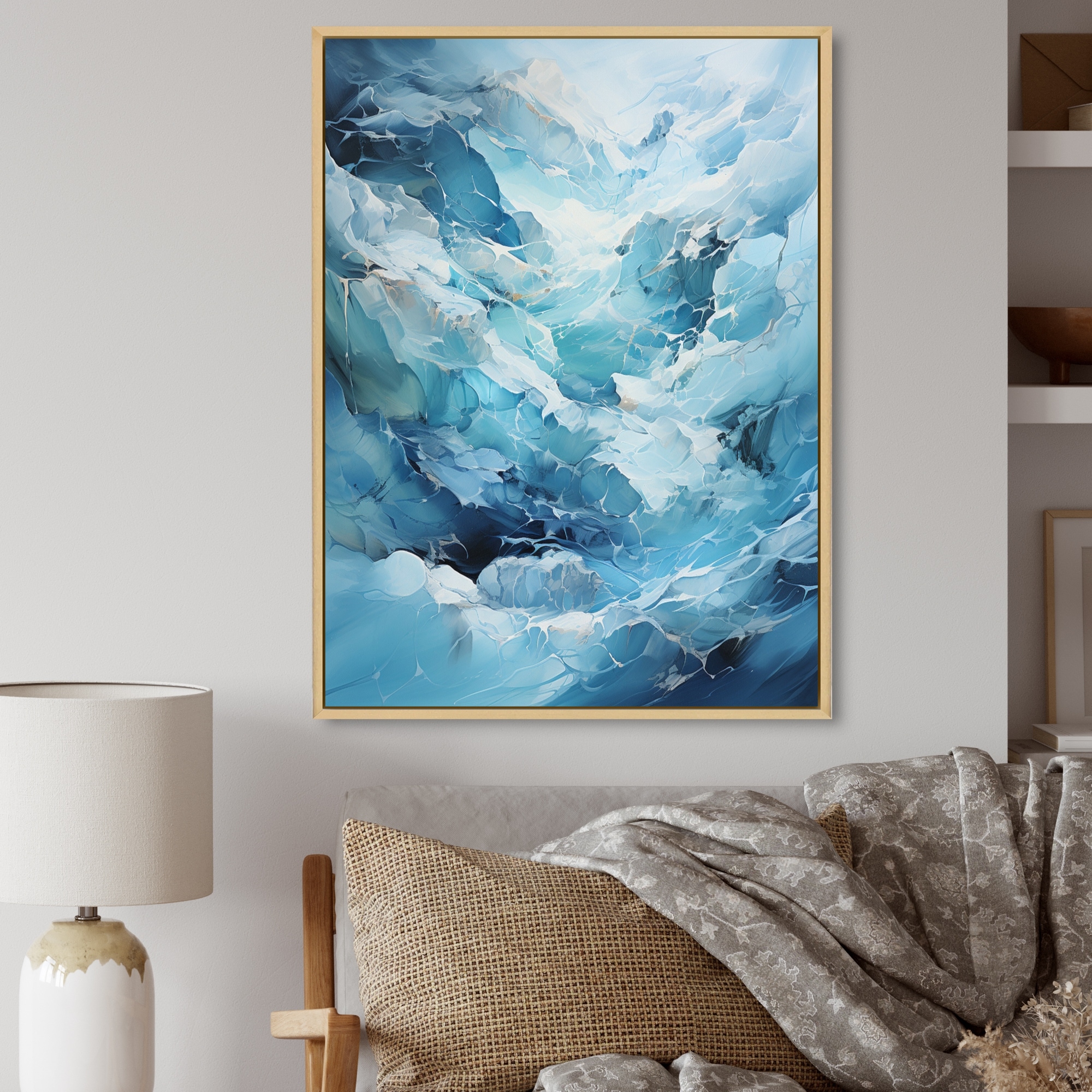 Designart "Teal Glacier Frozen Dreams" Glacier Framed Wall Decor