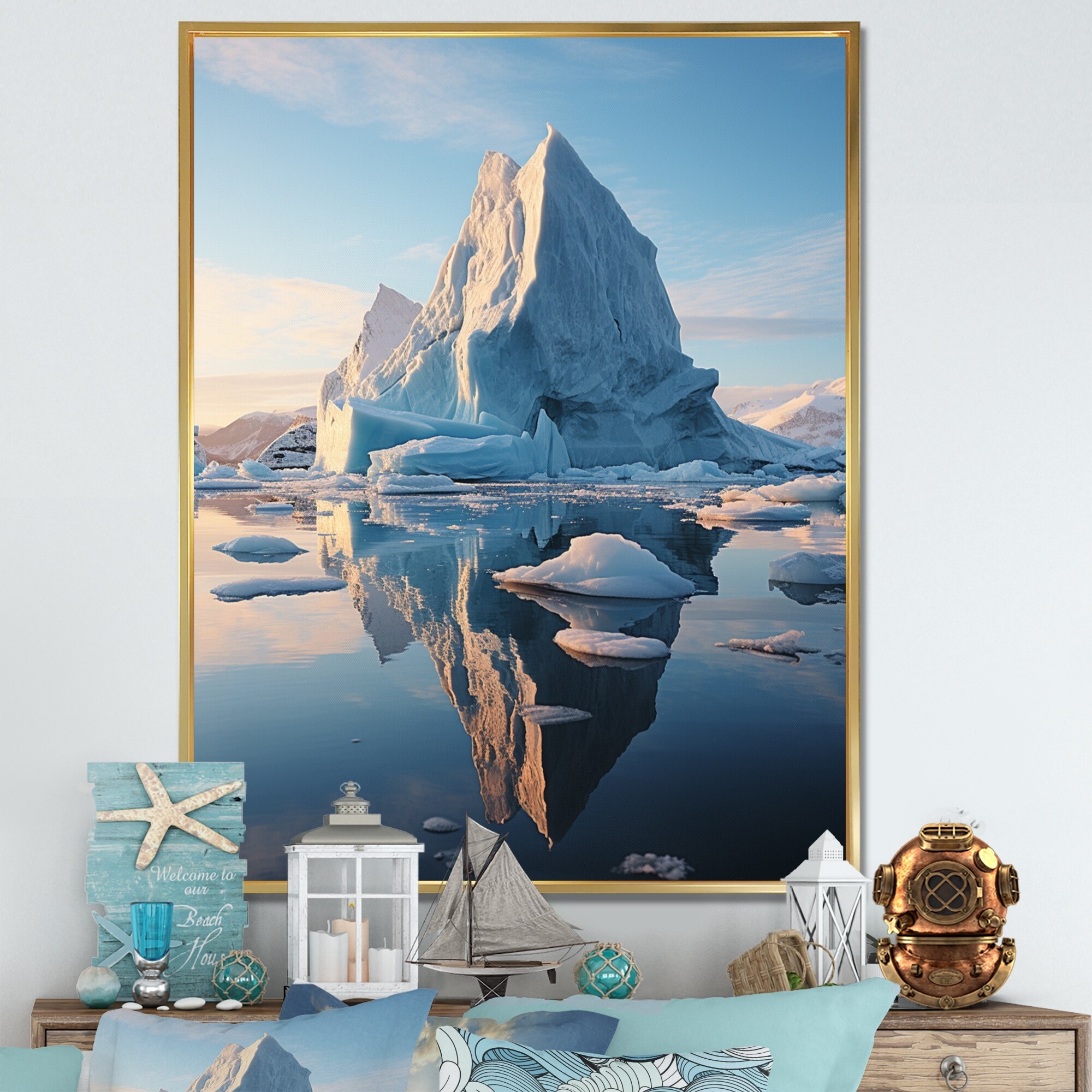 Designart "Teal Iceberg Majestic Frost" Iceberg Framed Canvas Print