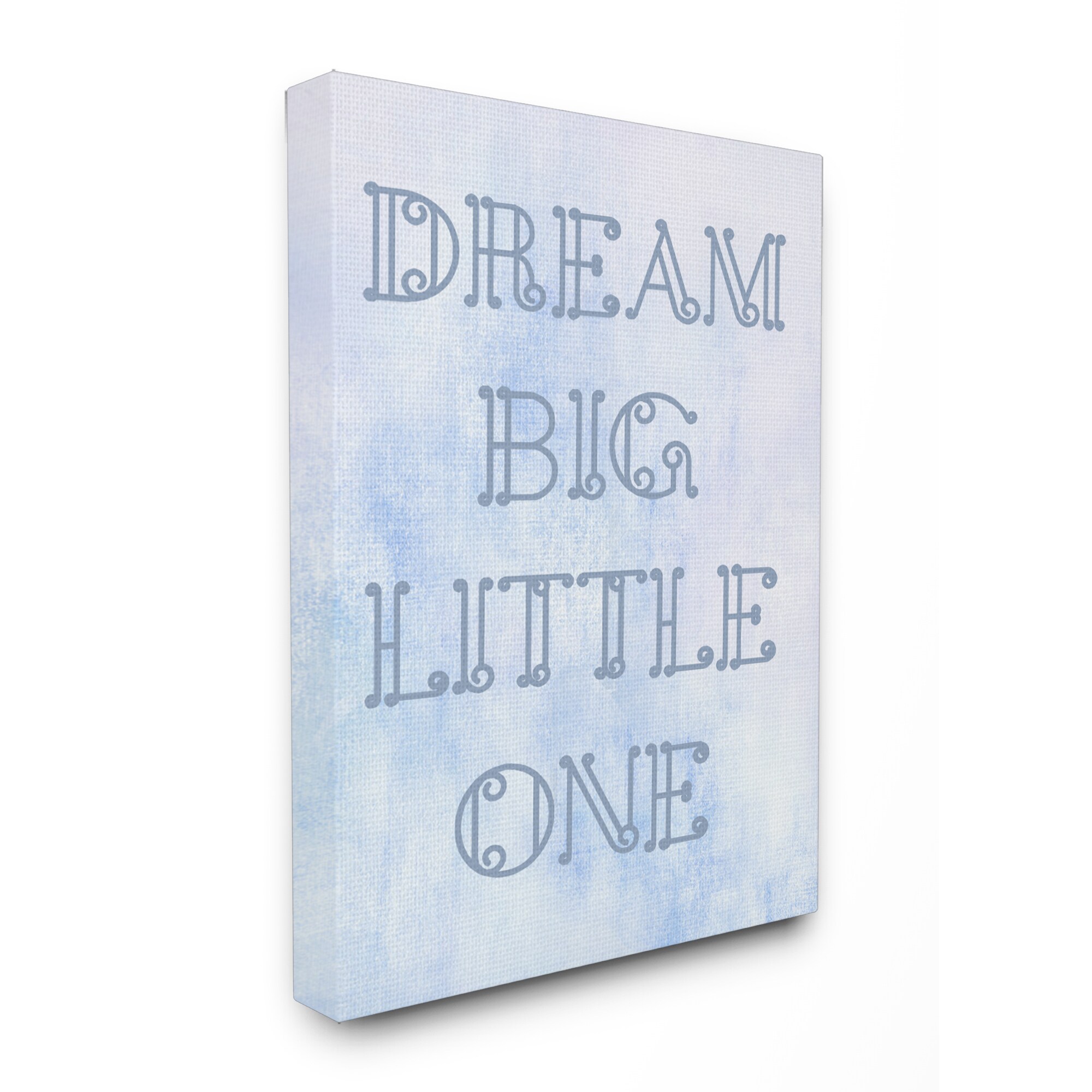 'Dream Big Little One - Blue Loopy Text' Stretched Canvas Wall Art
