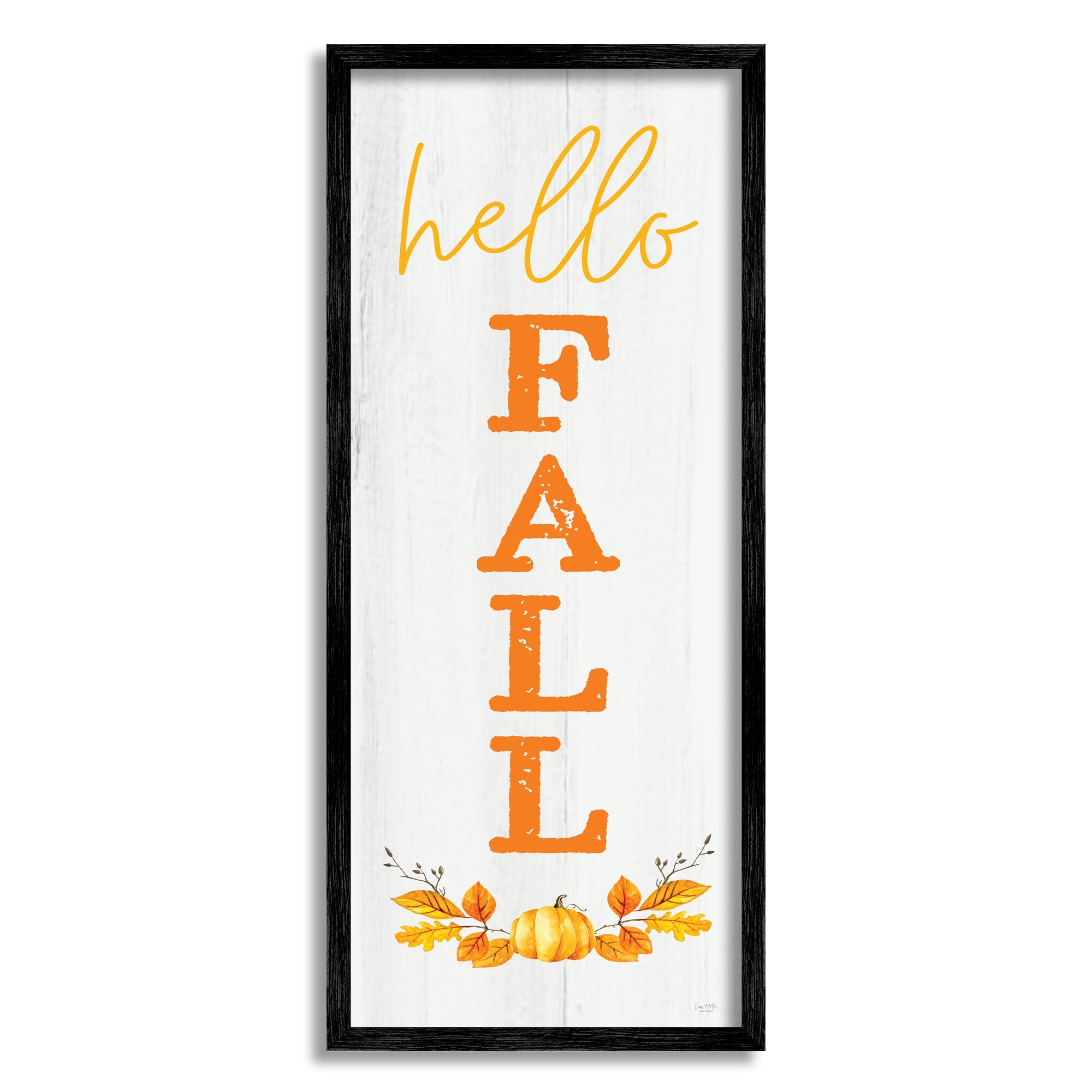 Stupell Industries Hello Fall Phrase Cascading Text Orange Leaves Pumpkin Framed Wall Art