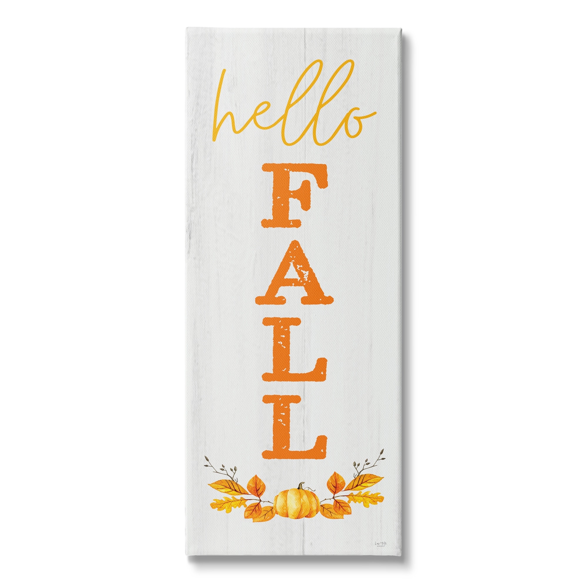 Stupell Industries Hello Fall Phrase Cascading Text Orange Leaves Pumpkin Canvas Wall Art