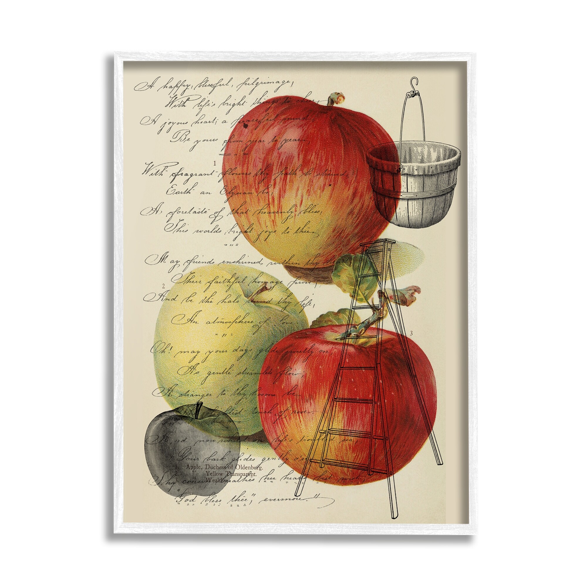 Stupell Vintage Apple Picking Illustration Antique Text Passage Framed Wall Art - Red