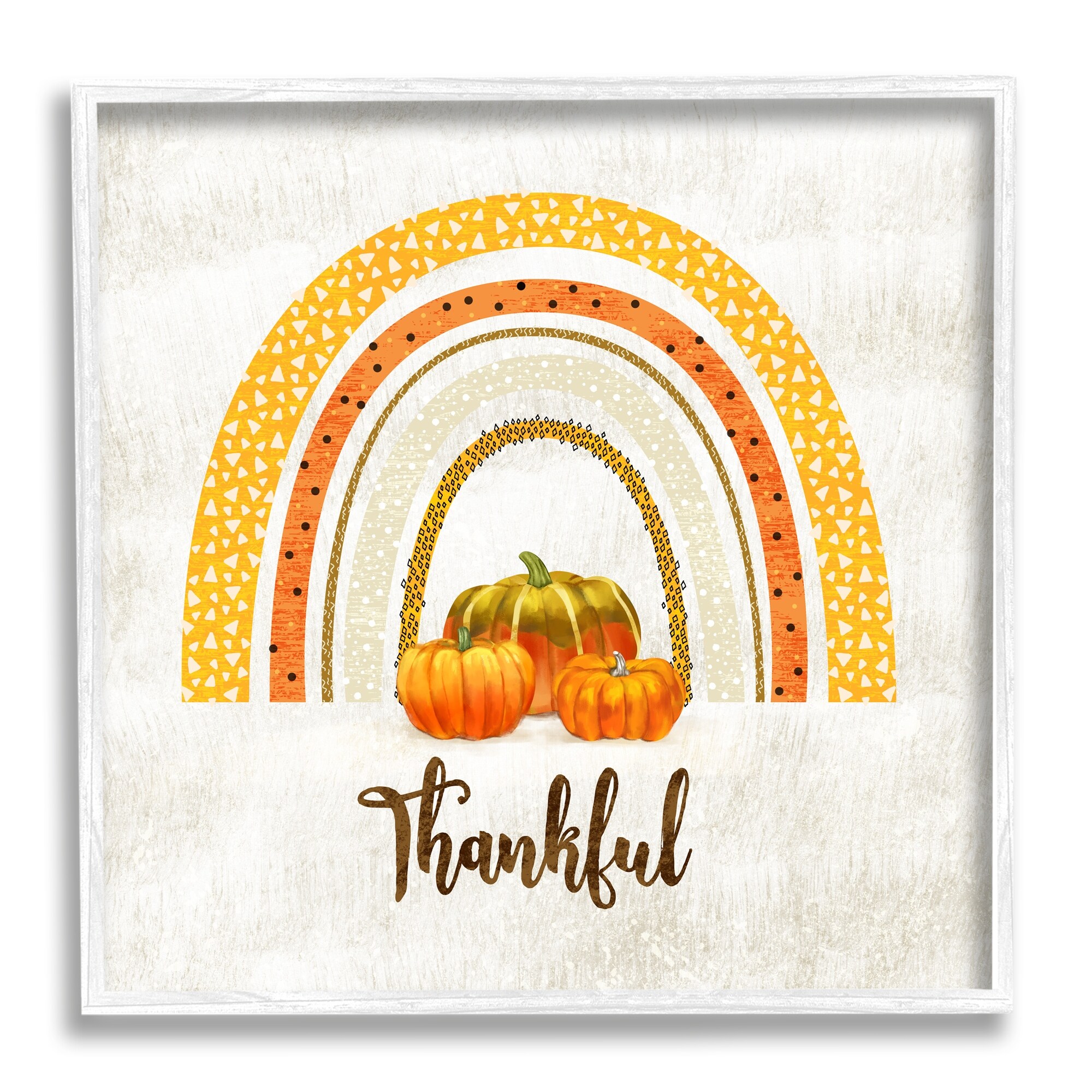 Stupell Industries Thankful Text Orange Autumn Rainbow Abstract Patterns Framed Wall Art