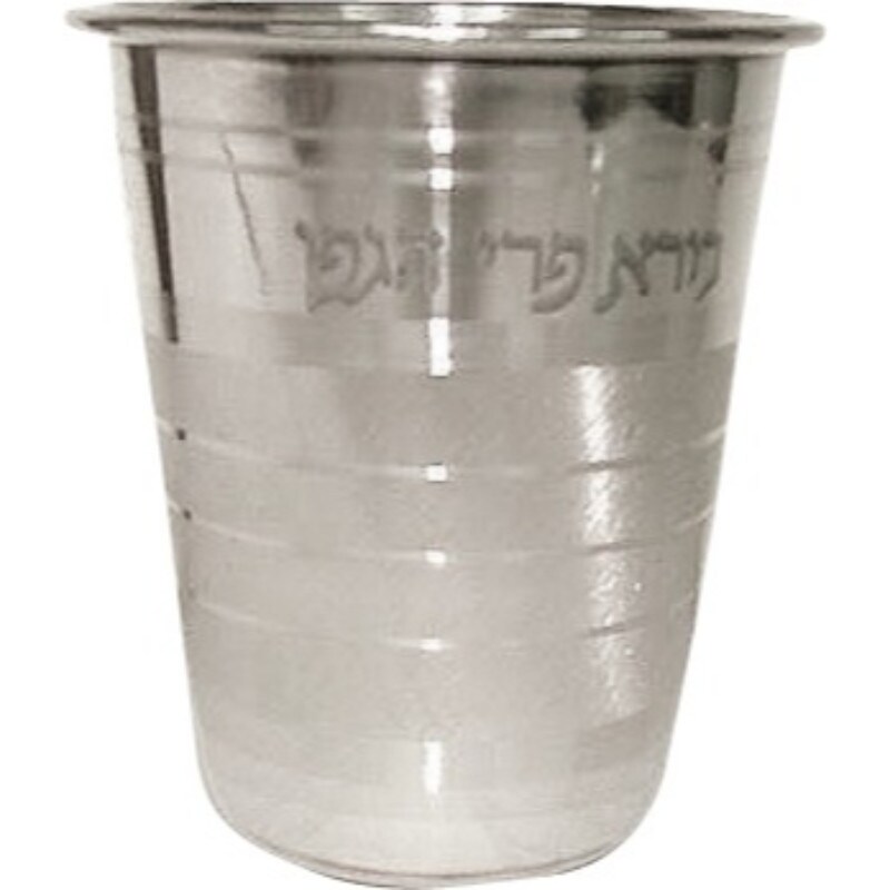 Kiddush Cup Stainless Steel With Hagefen Text 3"