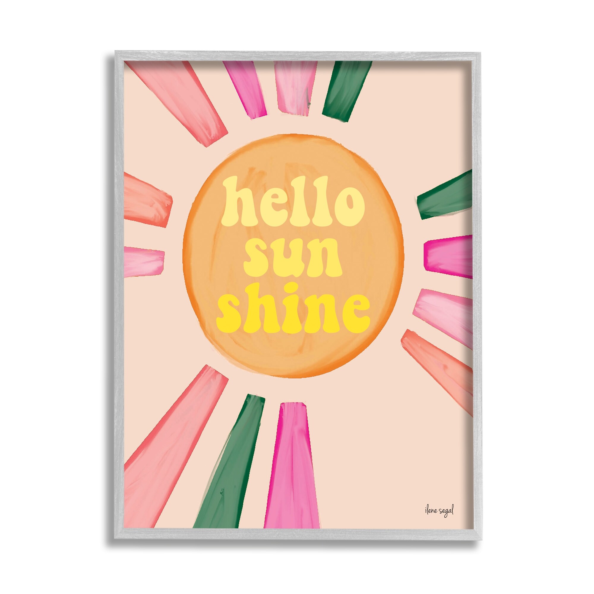 Stupell Industries Hello Sunshine Groovy Text Pink Green Sun Rays Framed Wall Art, Design by Ilene Segal - Multi