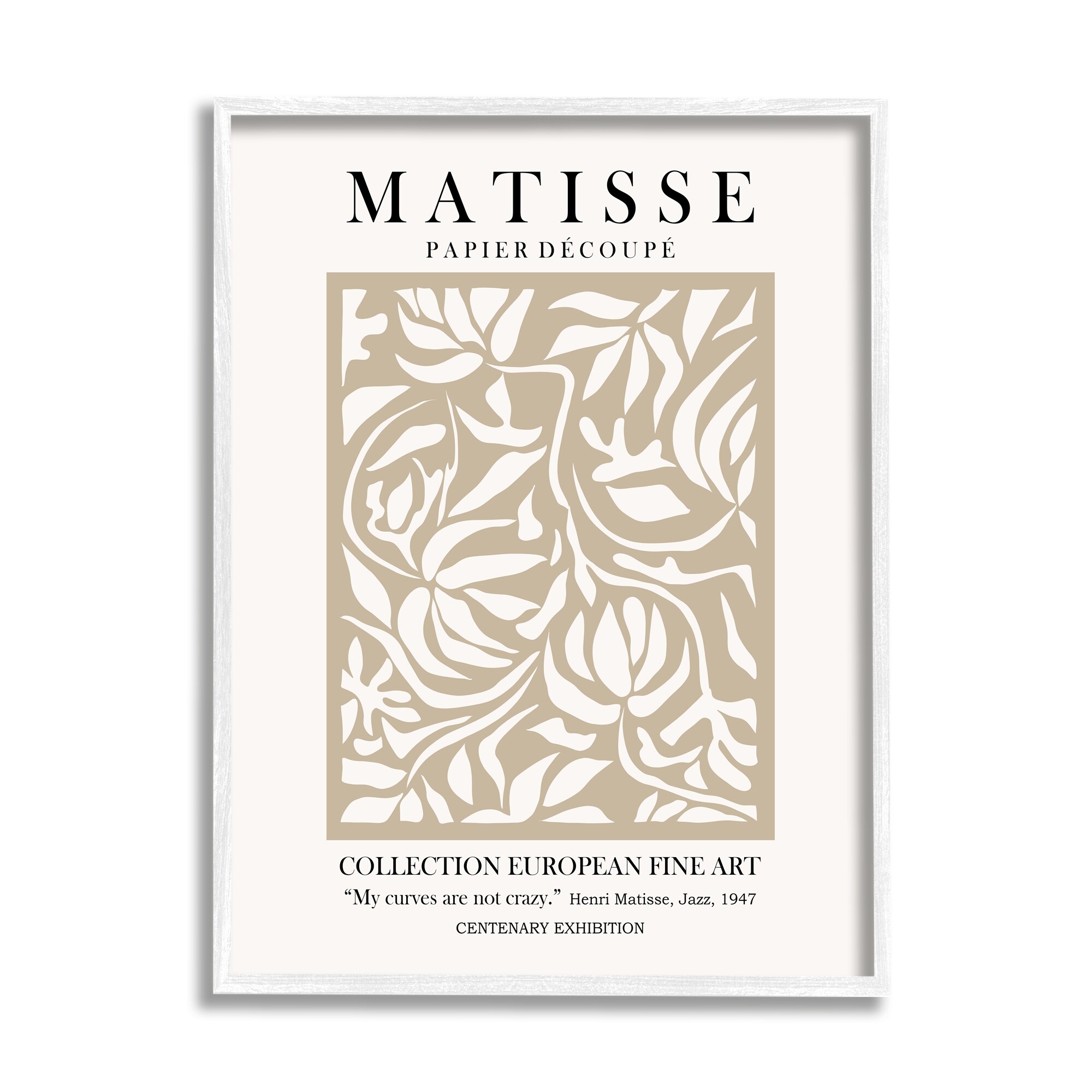 Stupell Industries Bold Modern Botanicals Leaf Silhouettes Matisse Text Framed Wall Art - Tan