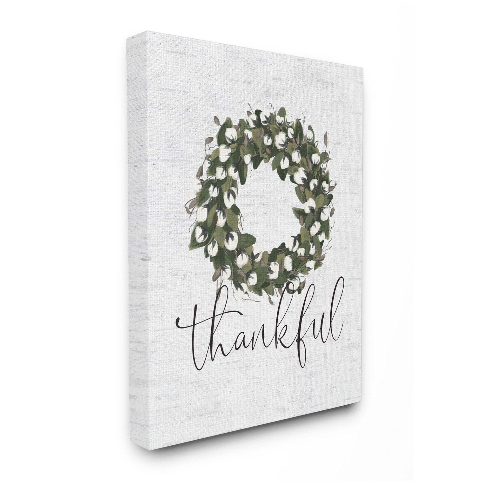 Stupell Industries Cotton Flower Country Style Wreath with Thankful Text Canvas Wall Art - Green